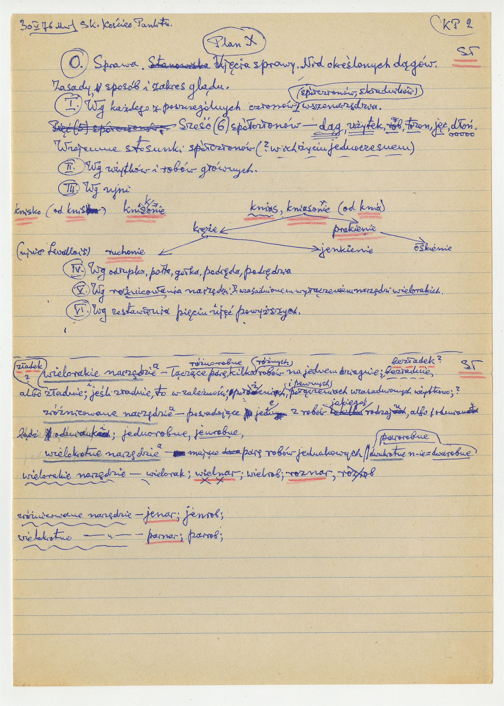 Rękopis pracy pt. "Kościec panlitu" - strona 12: "Plan X" 30 V [19]76