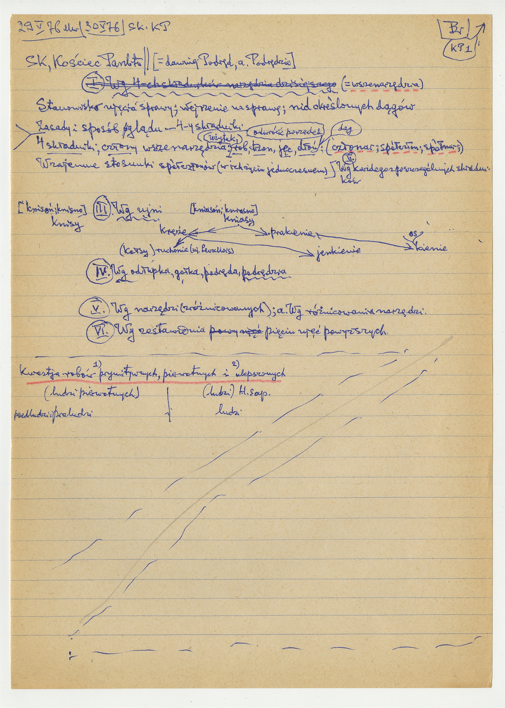 Rękopis pracy pt. "Kościec panlitu" - strona 13: "[=dawnek Podręd a. Podrędzie] (…)" 29-30 V [19]76