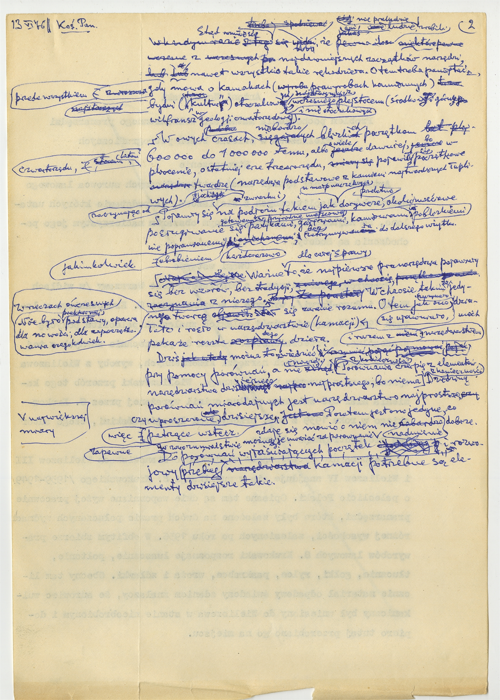 Rękopis pracy pt. "Kościec panlitu" - strona 15: "Rzecz z pranarzędziarstwa podstawowego kamiennego do robienia narzędzi z kamienia i ze surowców innych" c.d. 13 VI [19]76
