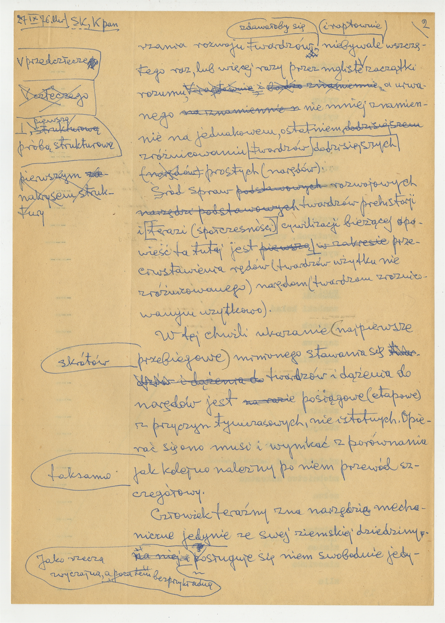 Rękopis pracy pt. "Kościec panlitu" - strona 2: "Zapowiedź i objaśnienia wstępne" c.d. 27 IX [19]76