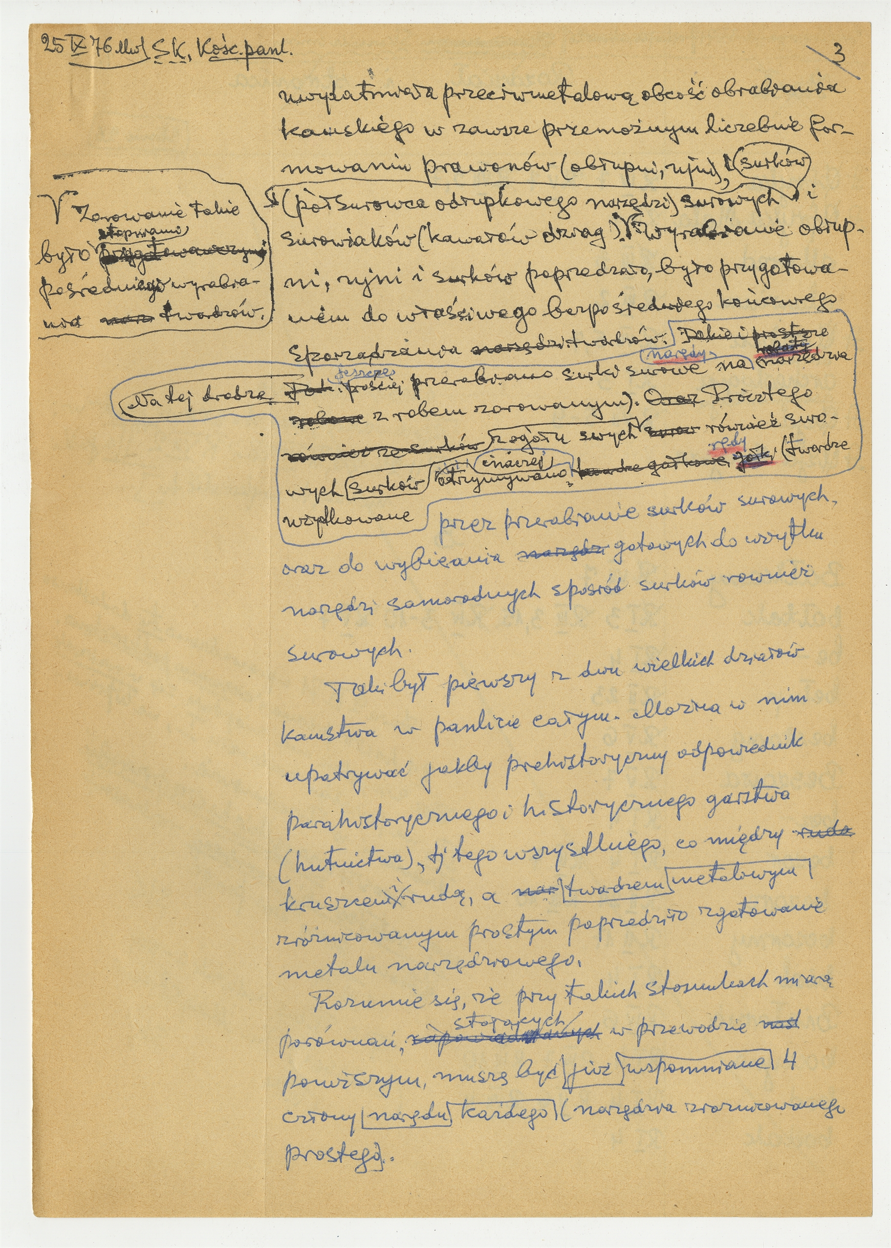 Rękopis pracy pt. "Kościec panlitu" - strona 6: "(…) uwydatniała przeciwmetalową obcość" 25 IX [19]76
