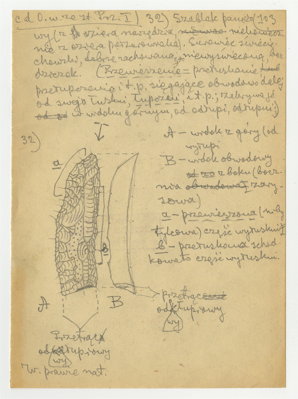 Rękopis pracy pt. "Materjał 1-y do Pasprzęt przemyski" - strona 109: "32. Szablak panożowy (…)"