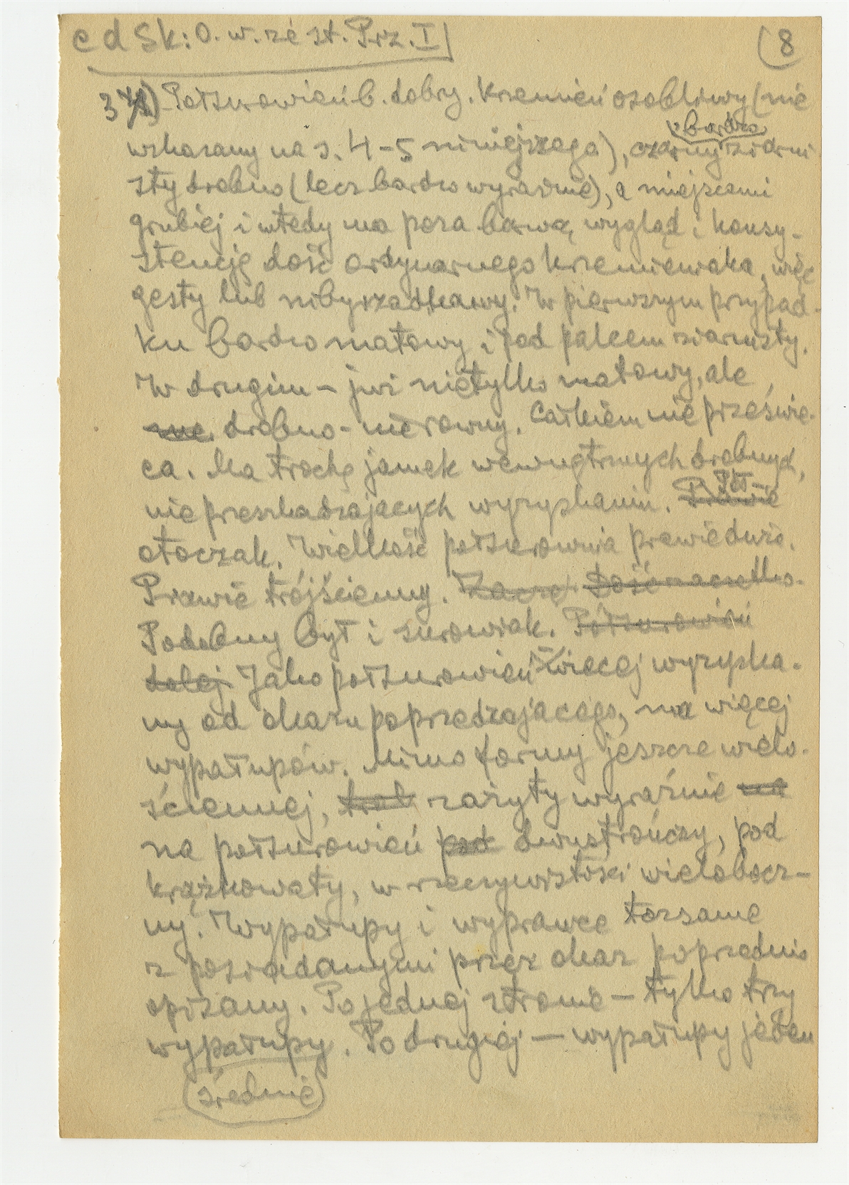 Rękopis pracy pt. "Materjał 1-y do Pasprzęt przemyski" - strona 14: "3. Półsurowień b. dobry (…)"
