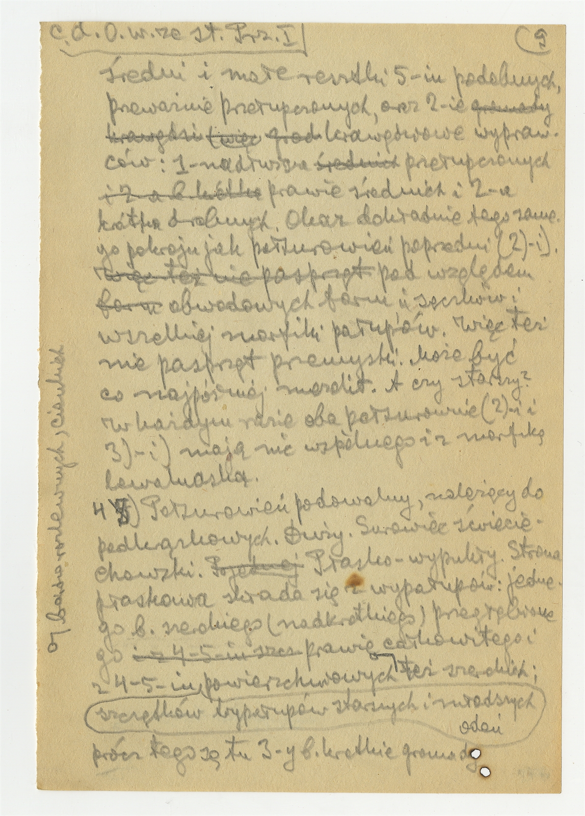Rękopis pracy pt. "Materjał 1-y do Pasprzęt przemyski" - strona 15: "3. Półsurowień b. dobry (…)" c.d. "4. Półsurowień podowalny (…)"