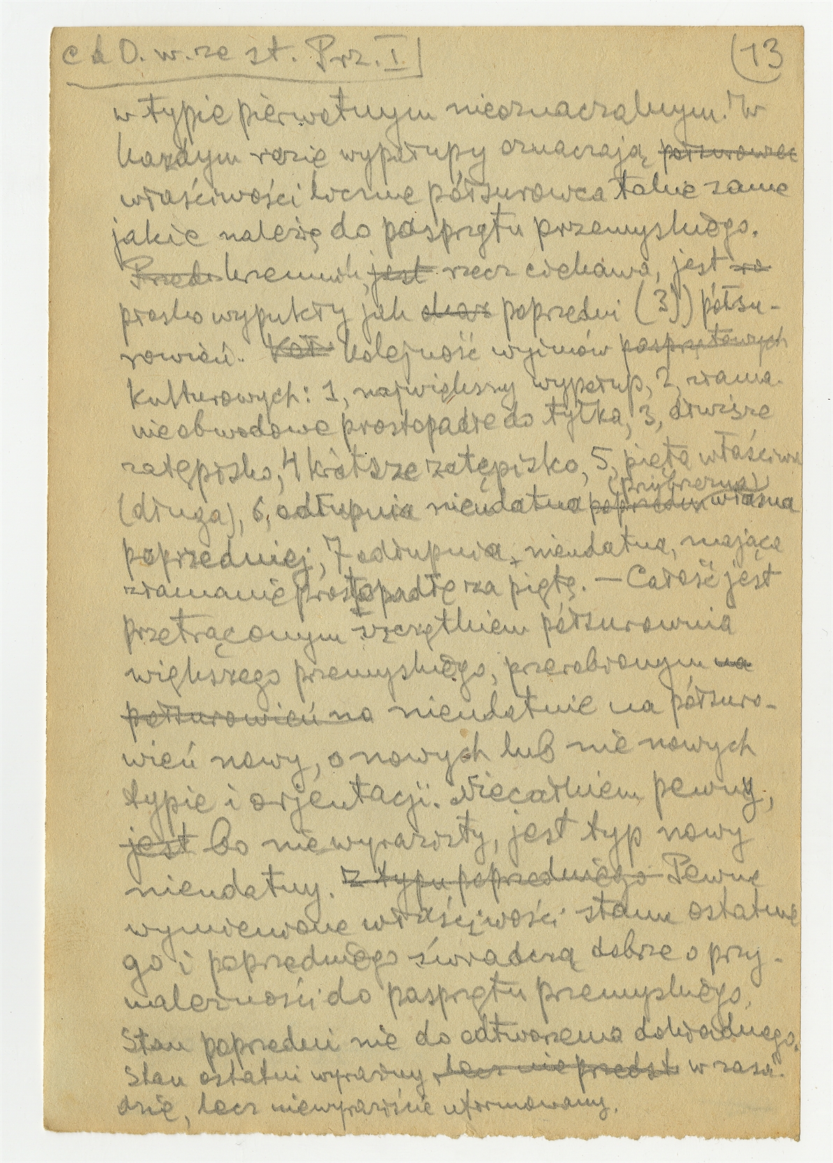 Rękopis pracy pt. "Materjał 1-y do Pasprzęt przemyski" - strona 19: "5. Półsurowień. Surowiec świeciechowski (…)" c.d.
