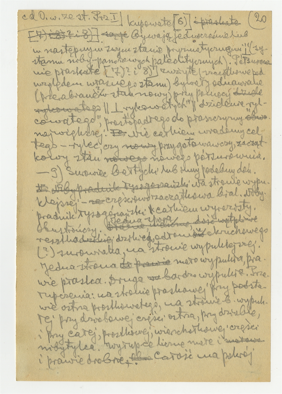 Rękopis pracy pt. "Materjał 1-y do Pasprzęt przemyski" - strona 26: "Uwagi uzupełniające do półsurowni pasprzętu przemyskiego" "9. Surowiec bałtyckie lub inny podobny doń (…)"