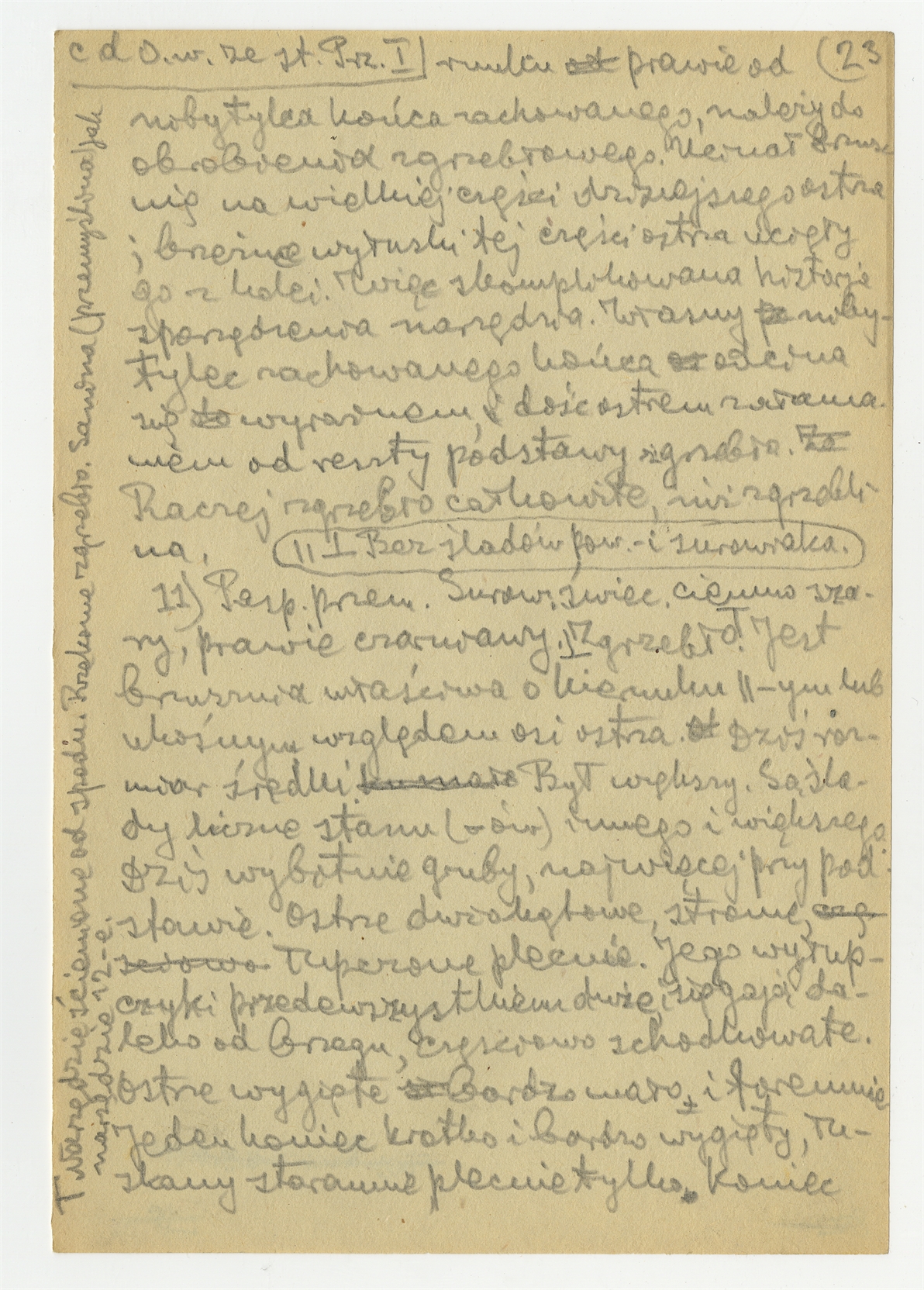 Rękopis pracy pt. "Materjał 1-y do Pasprzęt przemyski" - strona 29: "10. Pasprzętu przemyskiego. Sur. Świeciech. Jasny żółtawo-szary (…)" c.d. "11. Pasp. przem. Surow. świec. ciemno szary prawie czarniawy (…)"