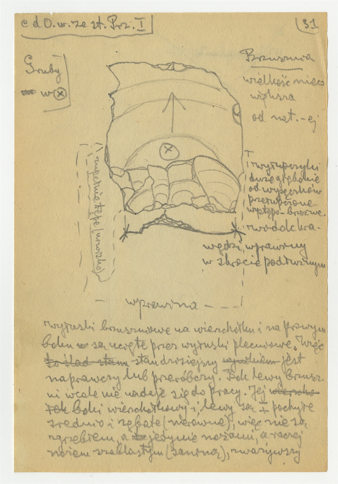 Rękopis pracy pt. "Materjał 1-y do Pasprzęt przemyski" - strona 37: "13. Sanina (przemyślina). Sur. swiec. (…)" c.d.