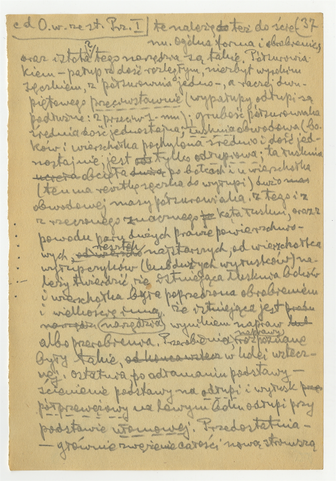 Rękopis pracy pt. "Materjał 1-y do Pasprzęt przemyski" - strona 43: "15. Wiórowiec (?) brzeszczowy (…)" c.d.