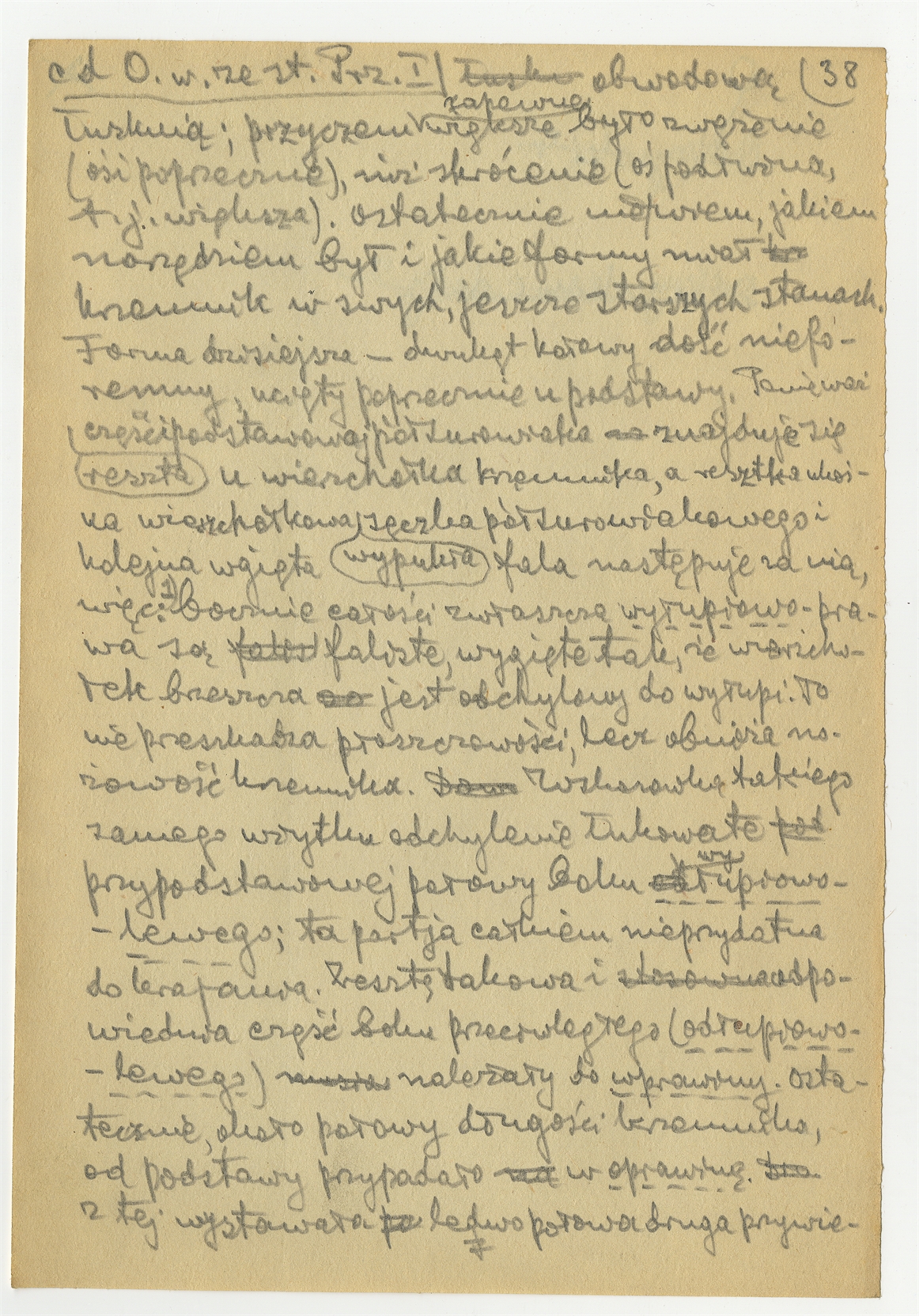 Rękopis pracy pt. "Materjał 1-y do Pasprzęt przemyski" - strona 44: "15. Wiórowiec (?) brzeszczowy (…)" c.d.