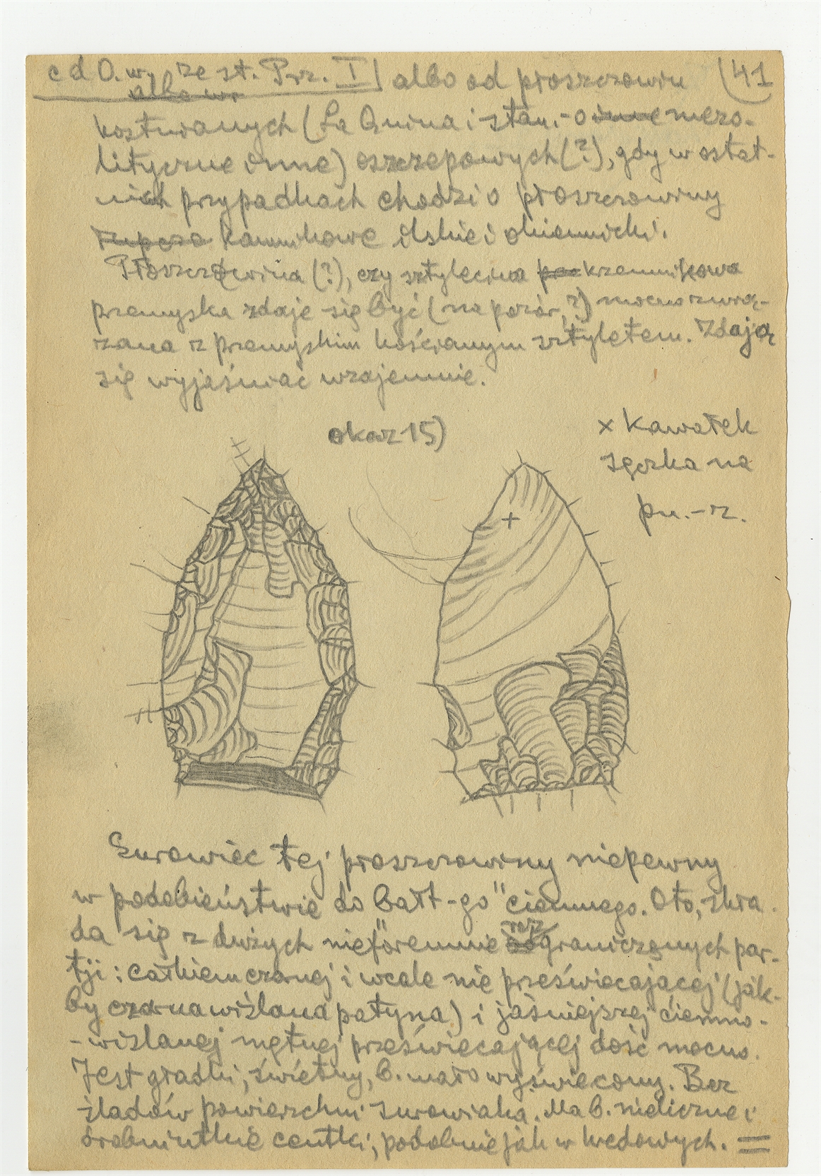 Rękopis pracy pt. "Materjał 1-y do Pasprzęt przemyski" - strona 47: "15. Wiórowiec (?) brzeszczowy (…)" c.d.