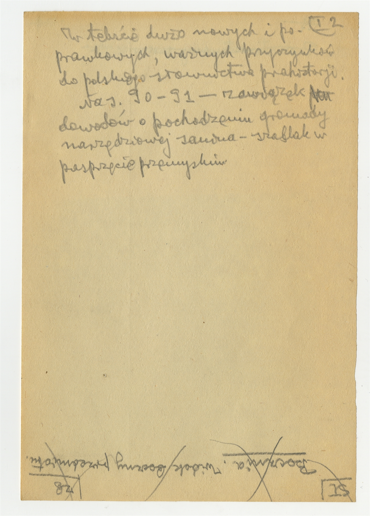 Rękopis pracy pt. "Materjał 1-y do Pasprzęt przemyski" - strona 6: uwaga na temat przyczynków do polskiego słownictwa prahistorji