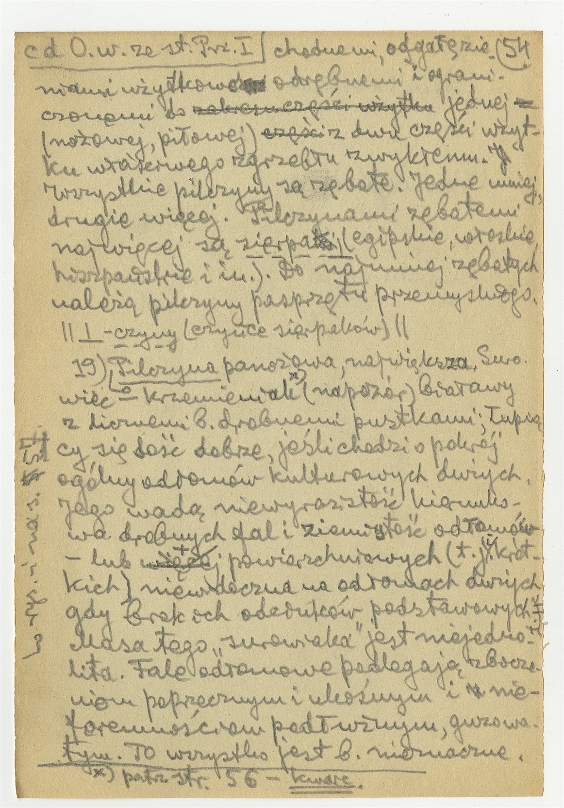 Rękopis pracy pt. "Materjał 1-y do Pasprzęt przemyski" - strona 60: "Stosunek pilców (pileców) do zgrzebeł i użytek ich" c.d. "19. Pilczyna panożowa (…)"