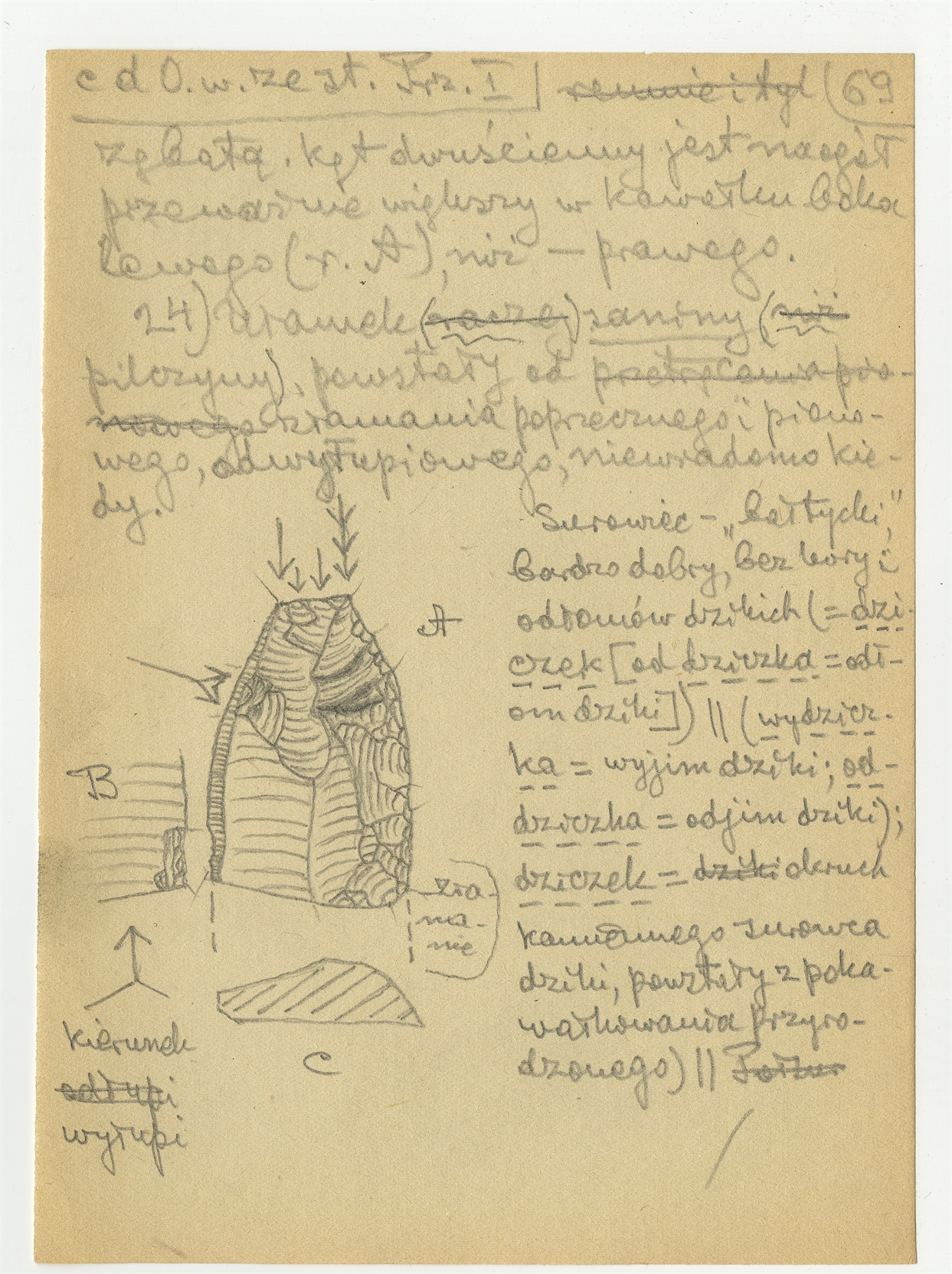 Rękopis pracy pt. "Materjał 1-y do Pasprzęt przemyski" - strona 75: "Opis okazu 22" c.d. "23. Ułamek pilczyny (…)" c.d. "24. Ułamek saniny (pilczyny) (…)"