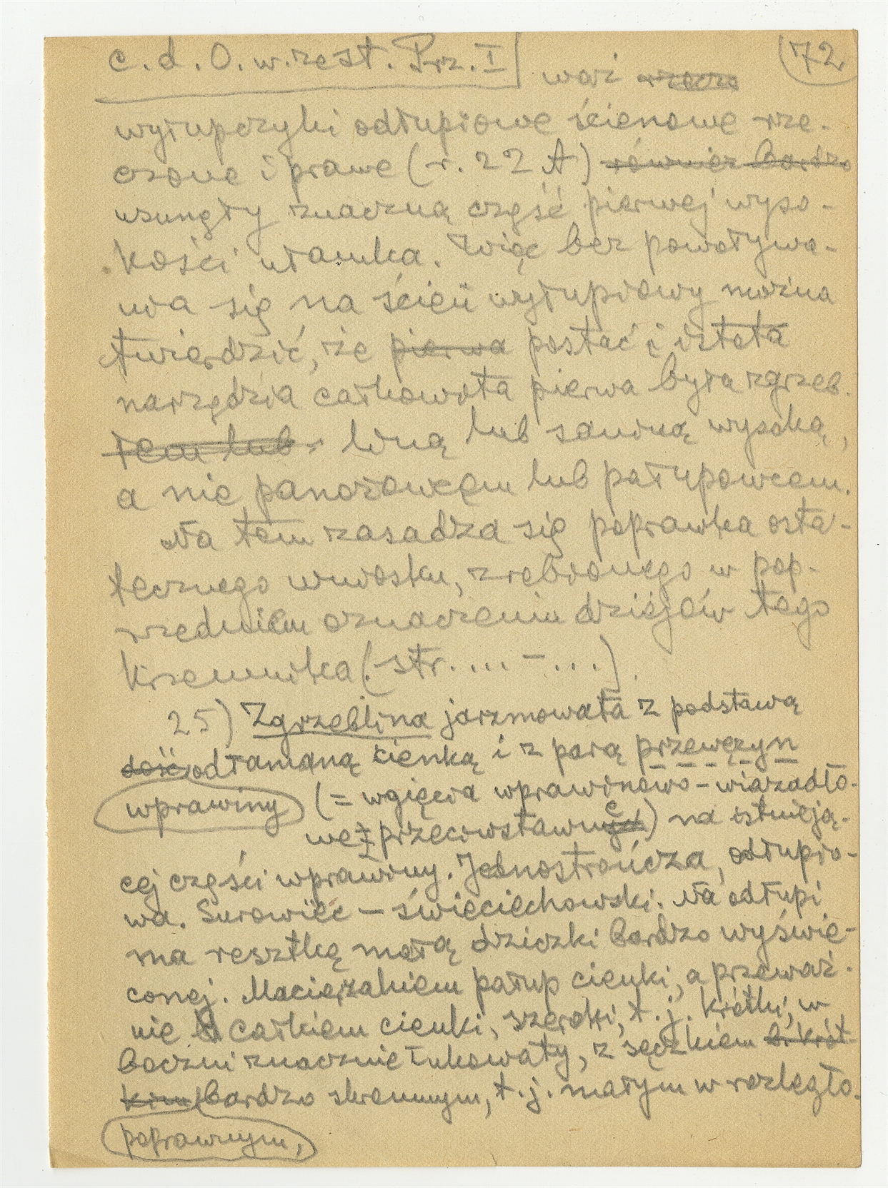 Rękopis pracy pt. "Materjał 1-y do Pasprzęt przemyski" - strona 78: "Uzupełnienie do okazu 22-go" c.d. "25. Zgrzeblina jarzmowata (…)"