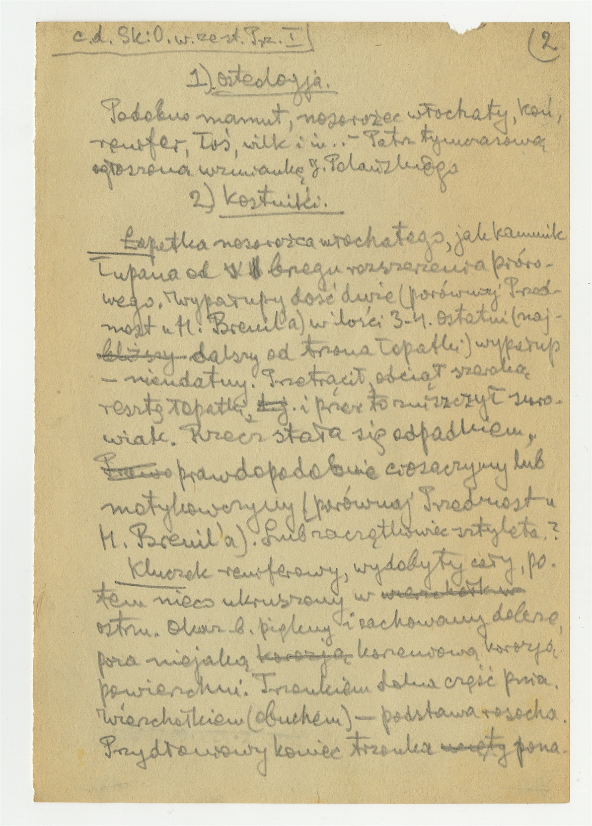 Rękopis pracy pt. "Materjał 1-y do Pasprzęt przemyski" - strona 8: "1. Osteologja" "2. Kostniki"