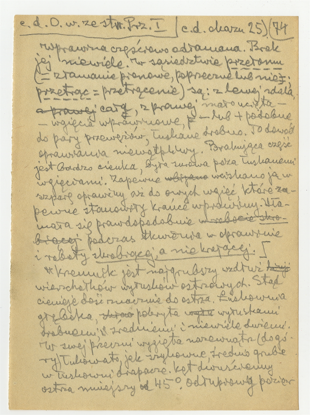 Rękopis pracy pt. "Materjał 1-y do Pasprzęt przemyski" - strona 80: "25. Zgrzeblina jarzmowata (…)" c.d.
