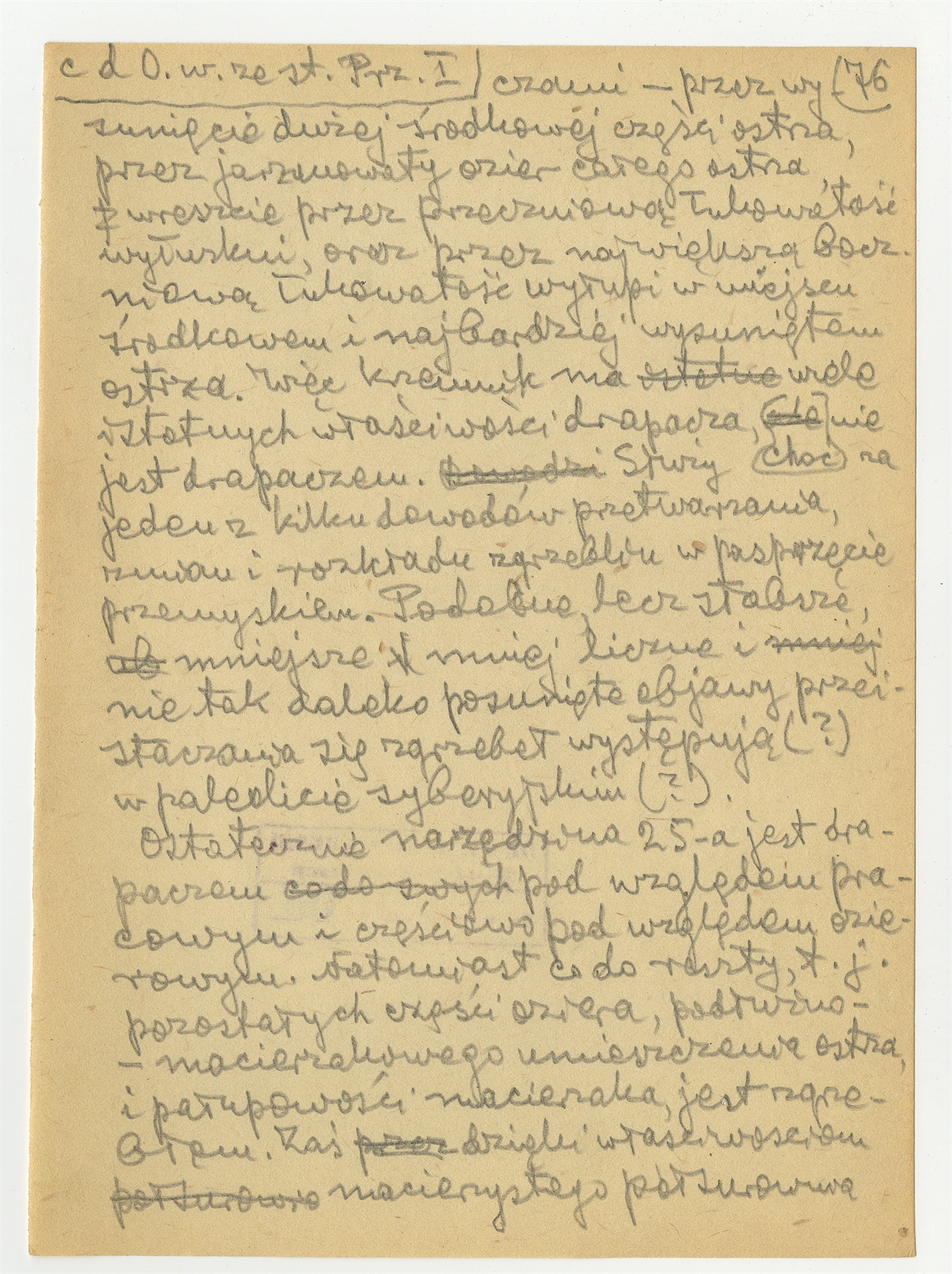 Rękopis pracy pt. "Materjał 1-y do Pasprzęt przemyski" - strona 82: "25. Zgrzeblina jarzmowata (…)" c.d.