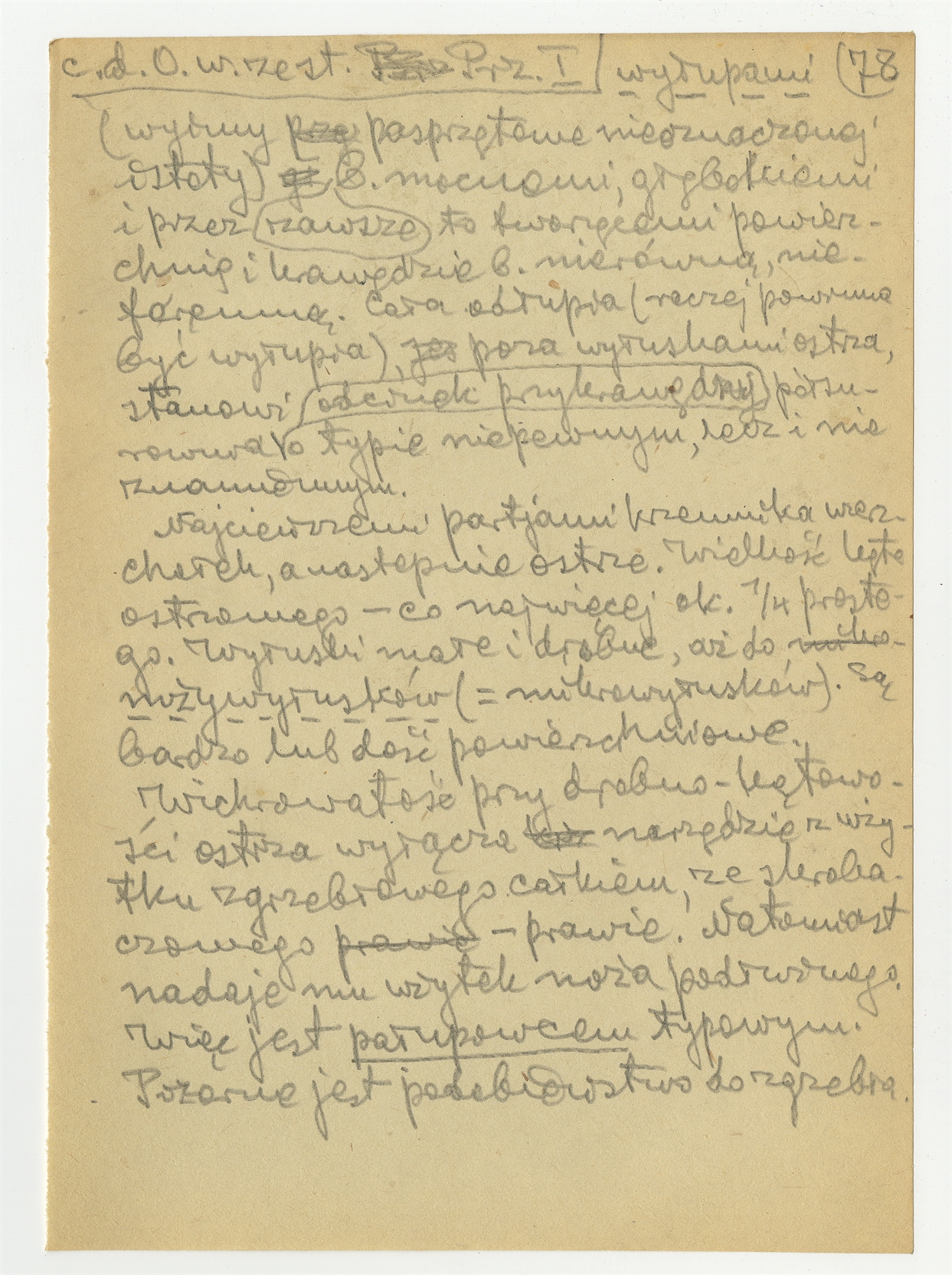 Rękopis pracy pt. "Materjał 1-y do Pasprzęt przemyski" - strona 84: "26. Nóż zgrzebłowaty (…)" c.d.