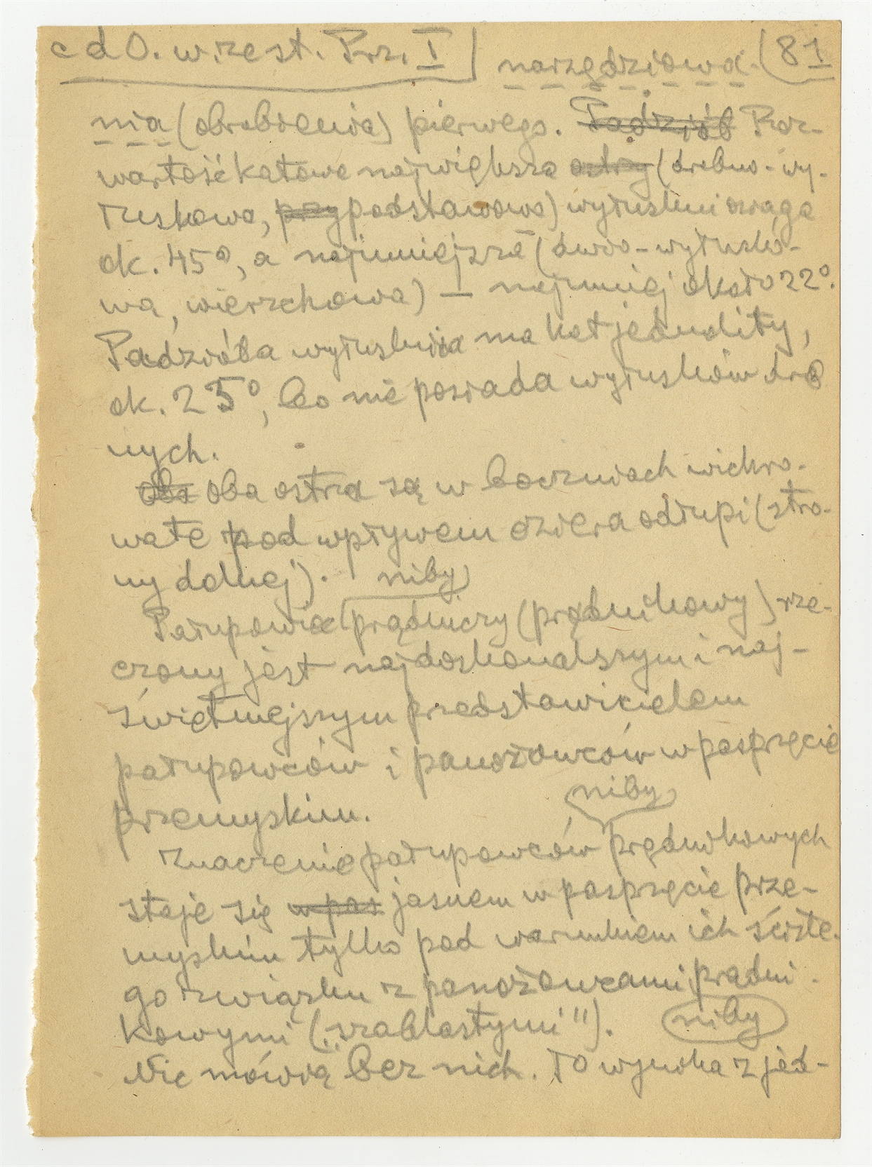 Rękopis pracy pt. "Materjał 1-y do Pasprzęt przemyski" - strona 87: "27. Nibyprądnik odłupiowy (…)" c.d.