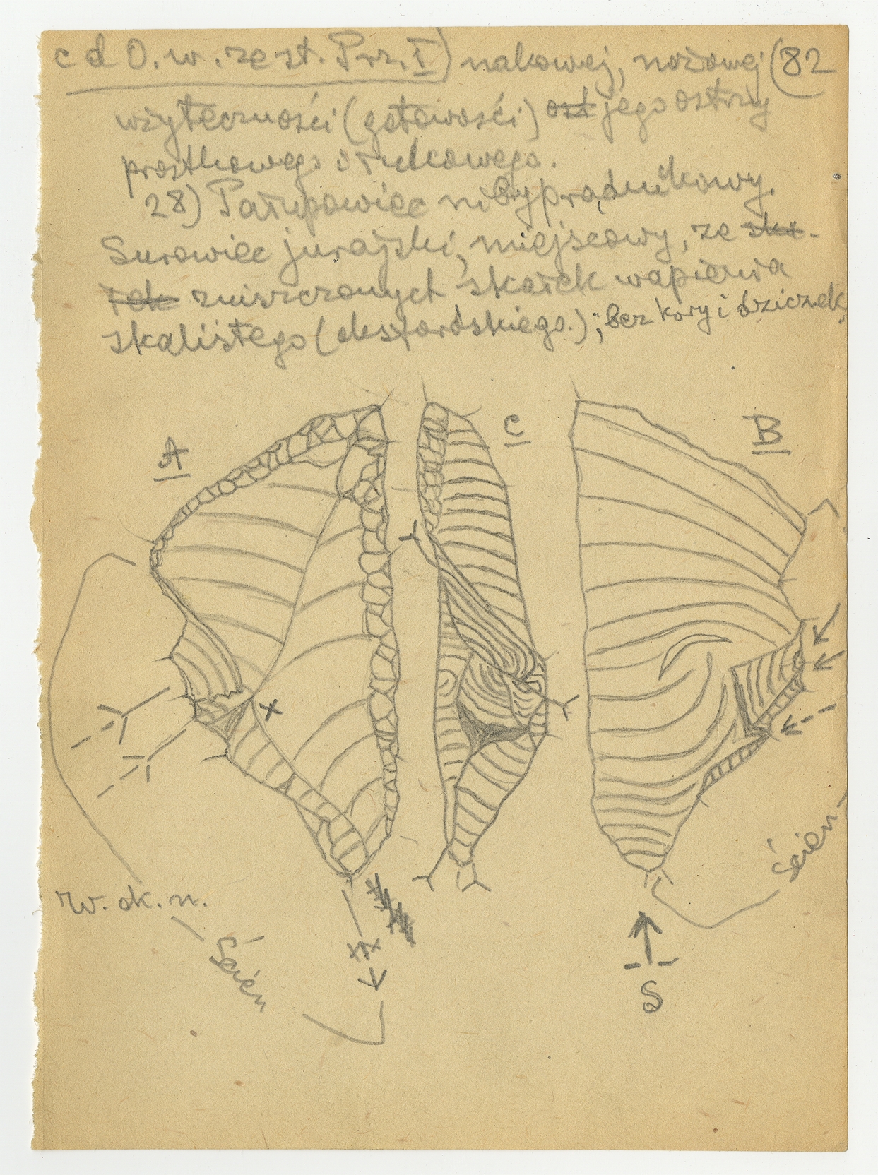 Rękopis pracy pt. "Materjał 1-y do Pasprzęt przemyski" - strona 88: "27. Nibyprądnik odłupiowy (…)" c.d. "28. Pałupowiec nibyproądnikowy (…)"