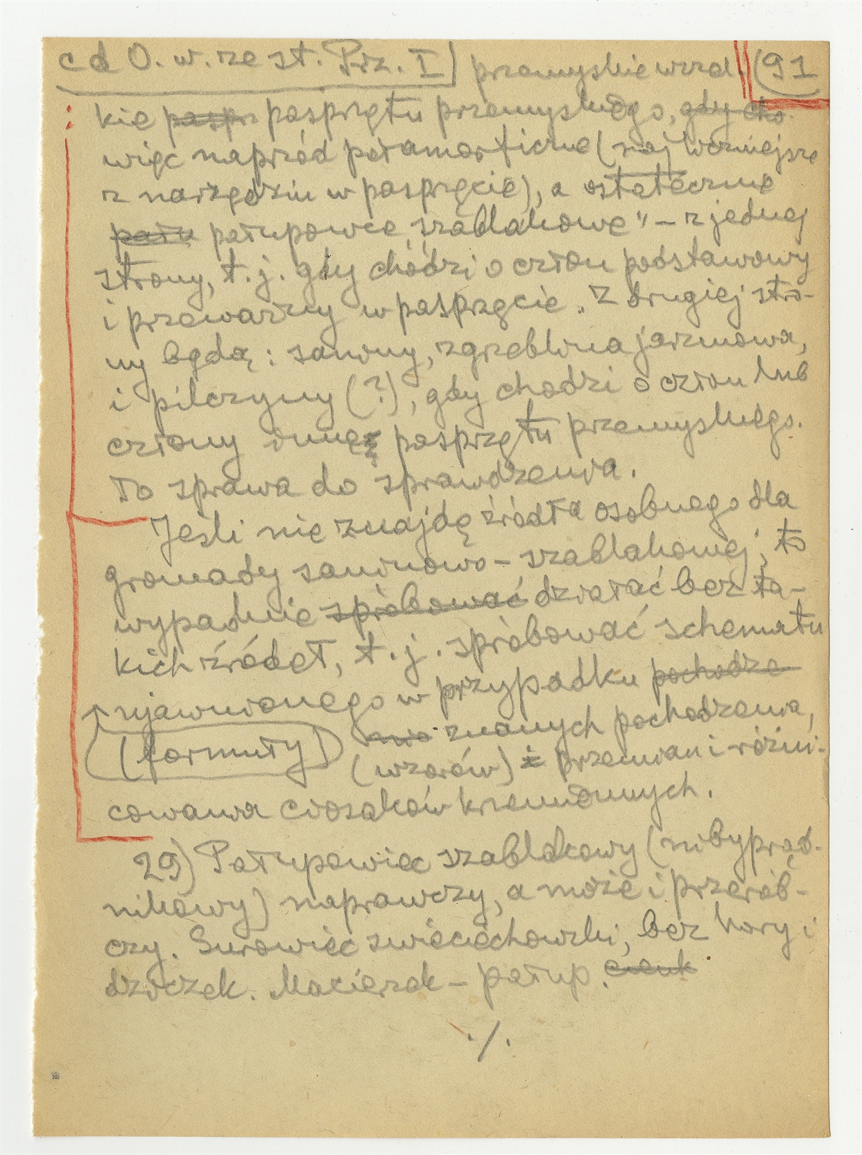 Rękopis pracy pt. "Materjał 1-y do Pasprzęt przemyski" - strona 97: o pochodzeniu form narzędzi pasprzętu przemyskiego c.d "29. Pałupowiec szablakowy (…)"
