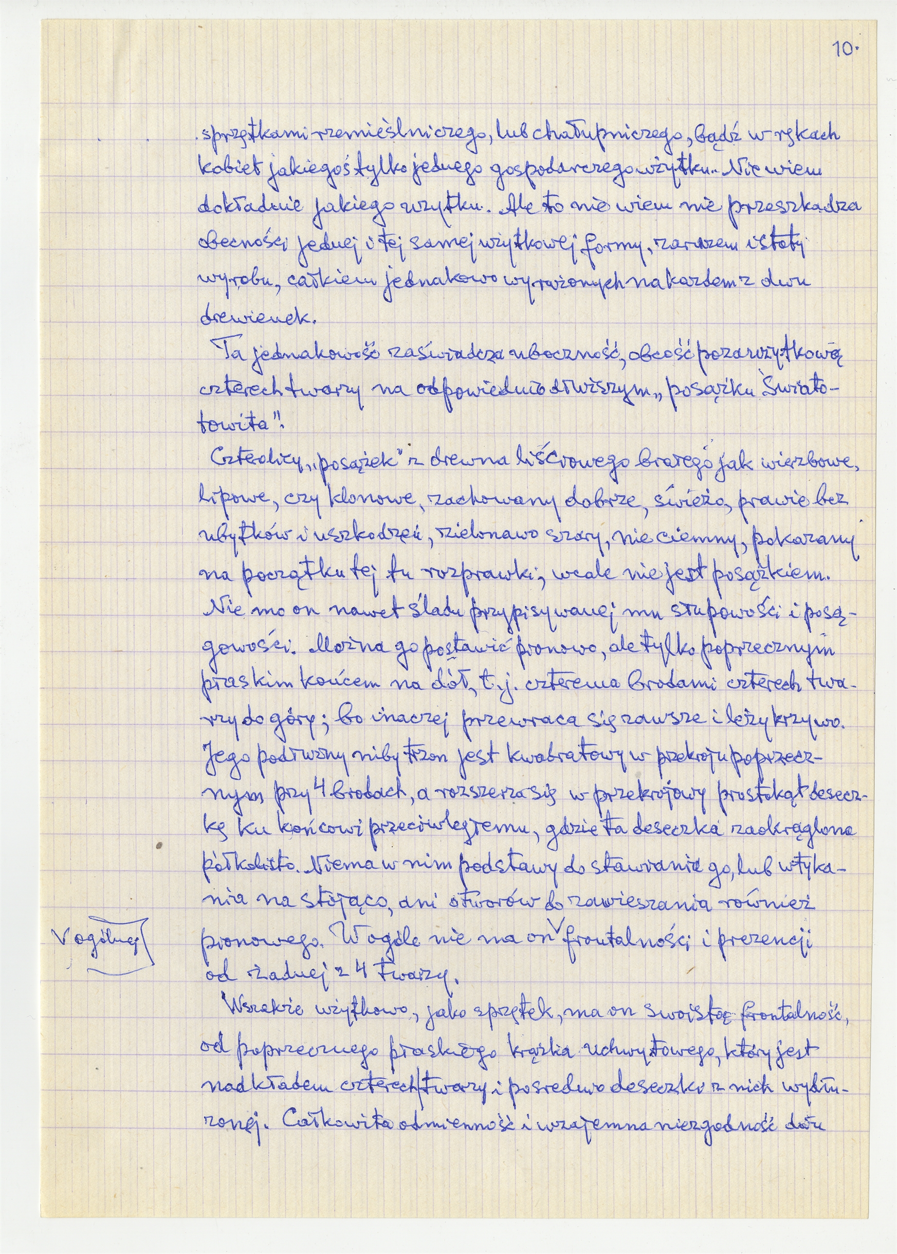 Rękopis pracy pt. "Prusacki Światowitak [do Kam 74]" (wersja 5) - strona 10: "(…) sprzętkami rzemieślniczego lub chałupniczego bądź w rękach kobiet (…)"