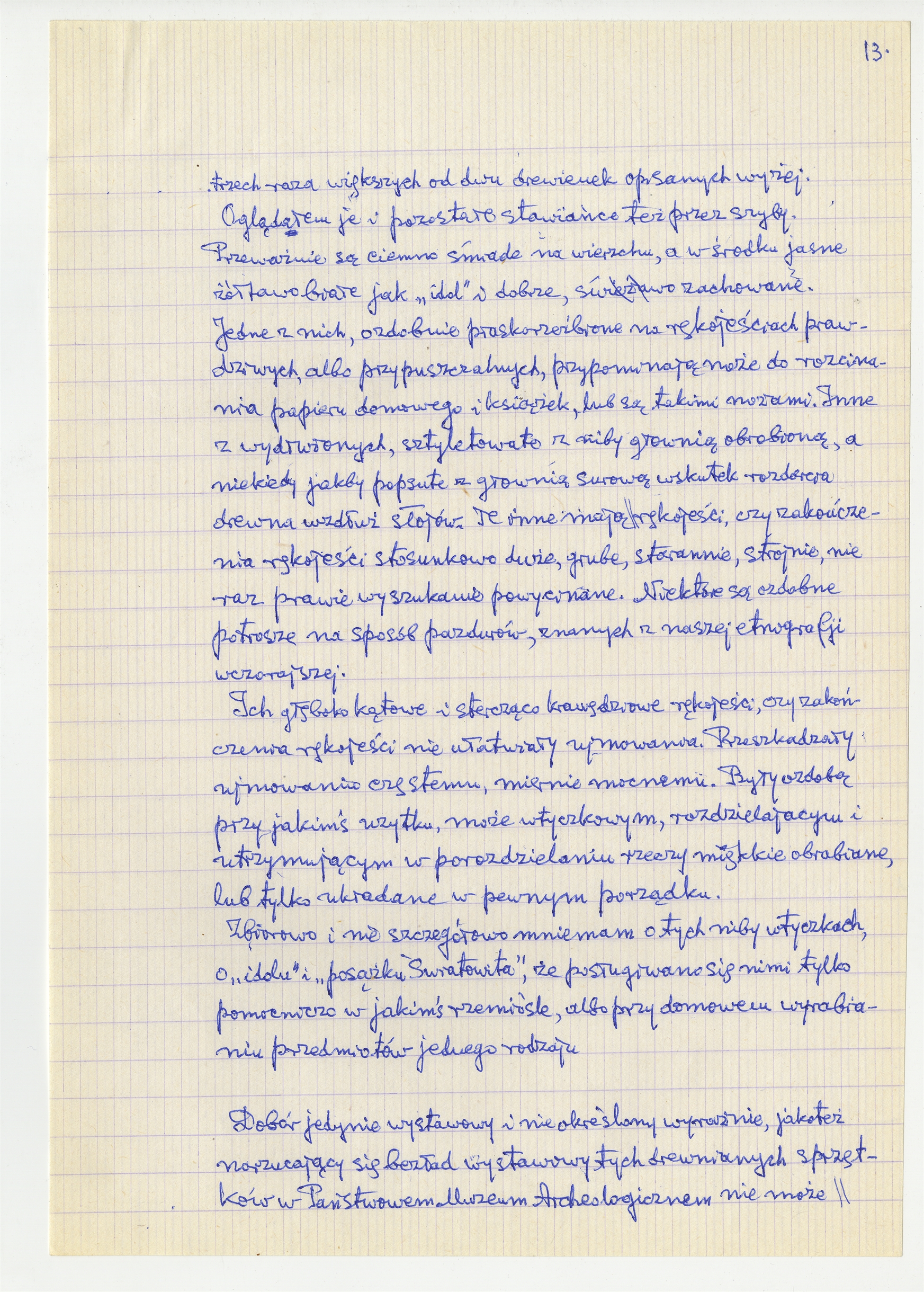 Rękopis pracy pt. "Prusacki Światowitak [do Kam 74]" (wersja 5) - strona 13: "(…) Oglądałem je i pozostałe stawiańce (…)"