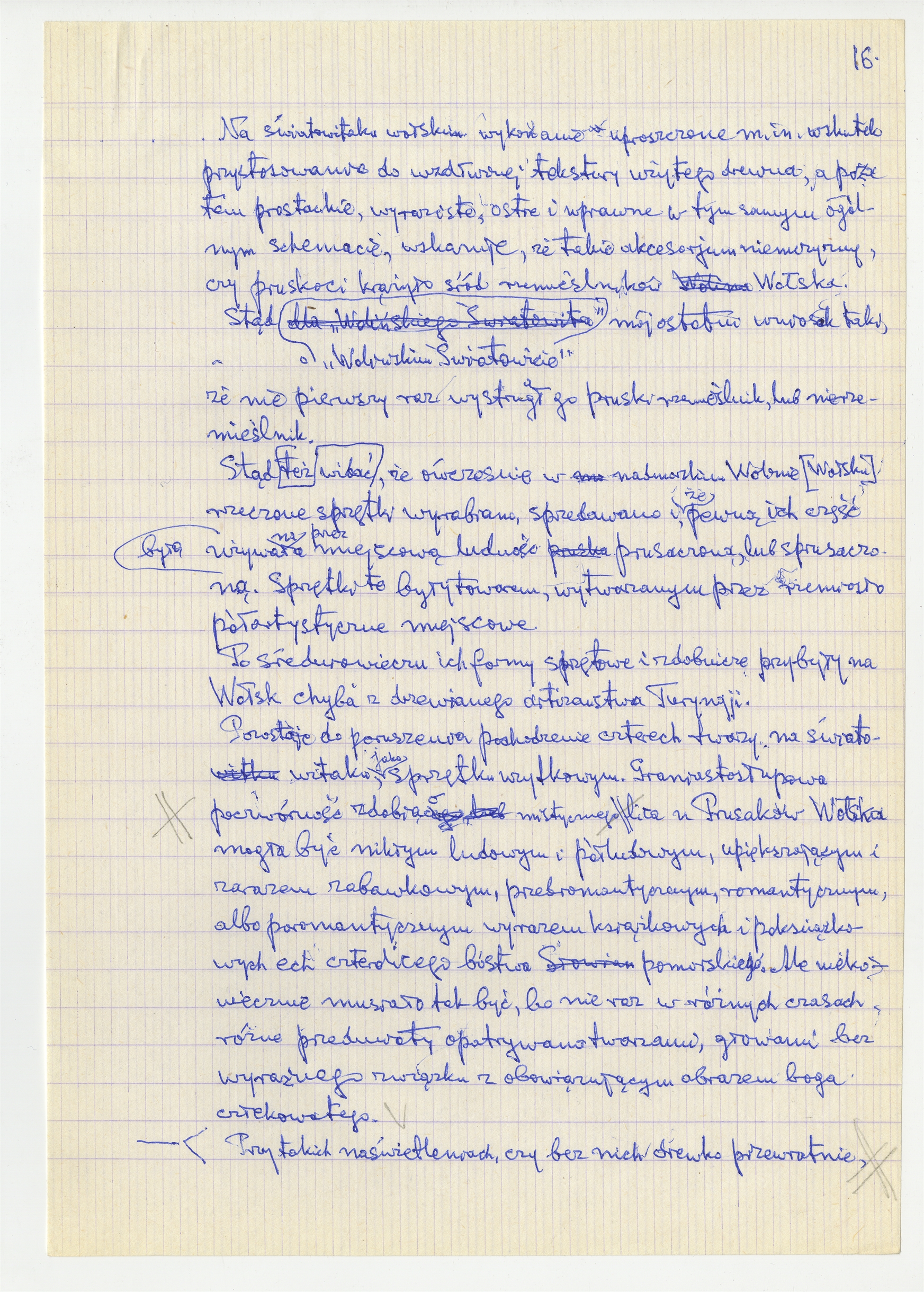 Rękopis pracy pt. "Prusacki Światowitak [do Kam 74]" (wersja 5) - strona 16: "(…) Na Światowitaku wołskim wykonanie uproszczone (…)"
