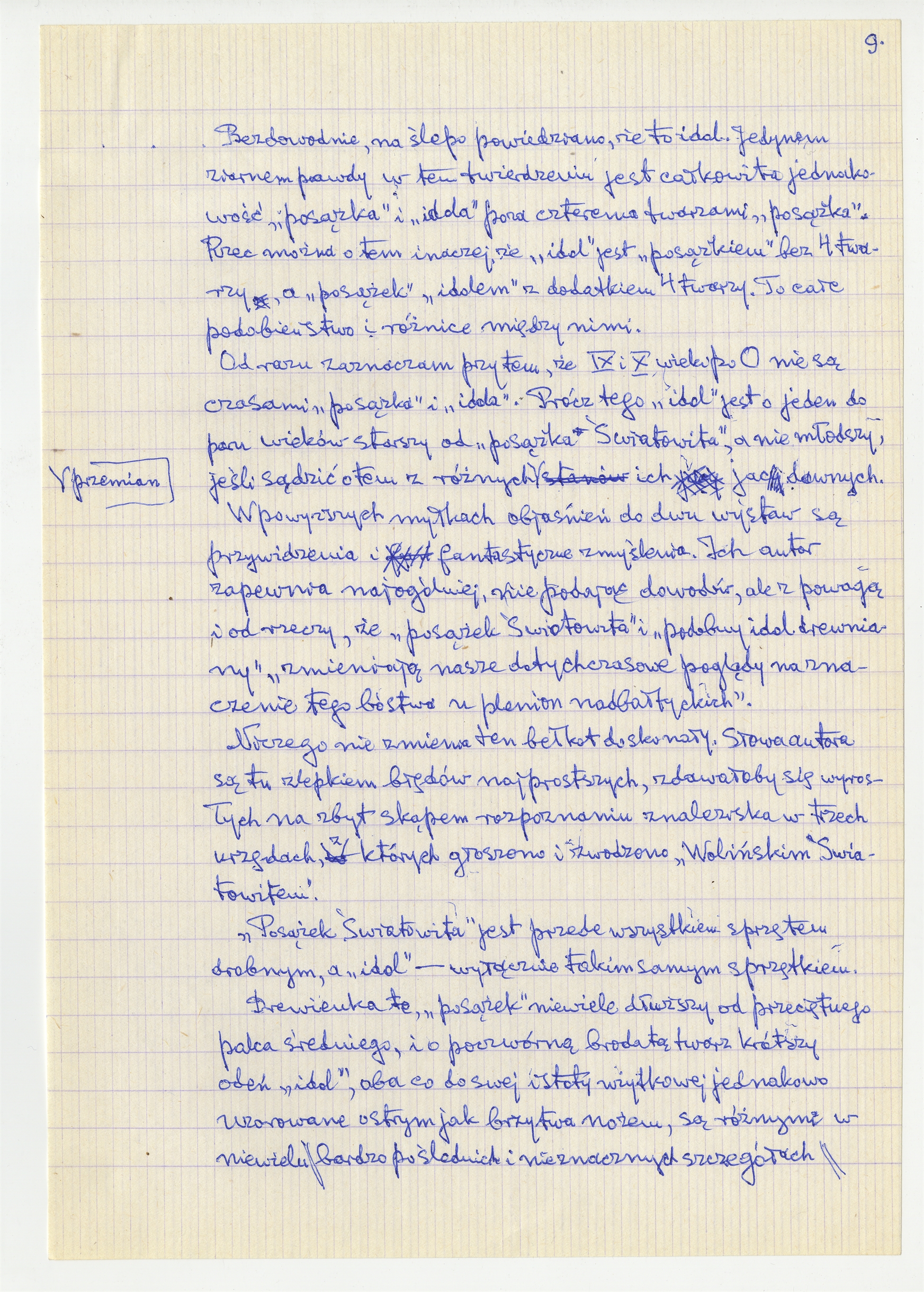 Rękopis pracy pt. "Prusacki Światowitak [do Kam 74]" (wersja 5) - strona 9: "(…) Bezdowodnie na ślepo powiedziano że to idol (…)"