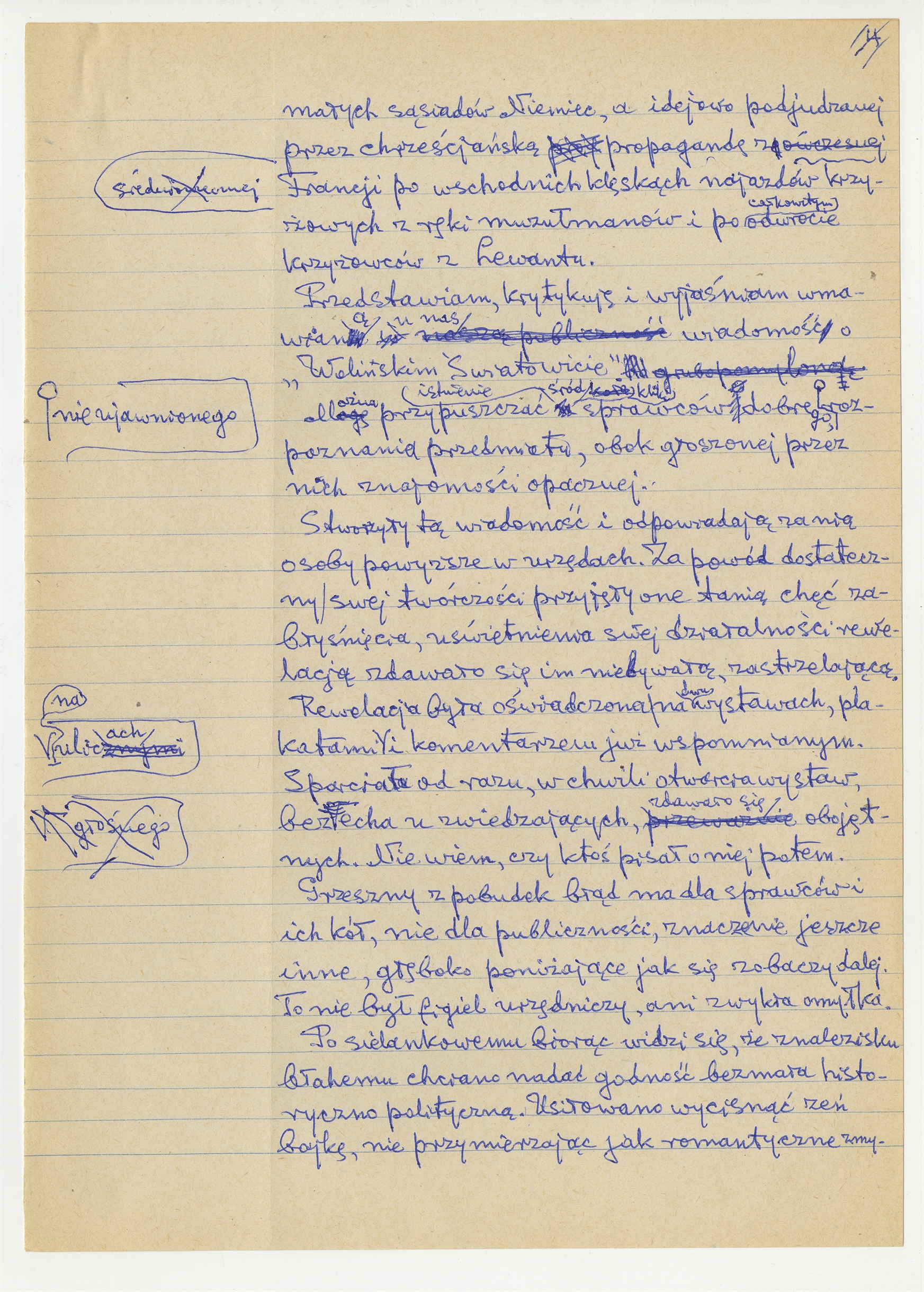 Rękopis pracy pt. "Prusacki Światowitek" (wersja 1) - strona 4: "(…) małych sąsiadów Niemiec a idejowo podjudzanej przez chrześcijańską propagandę (…)"
