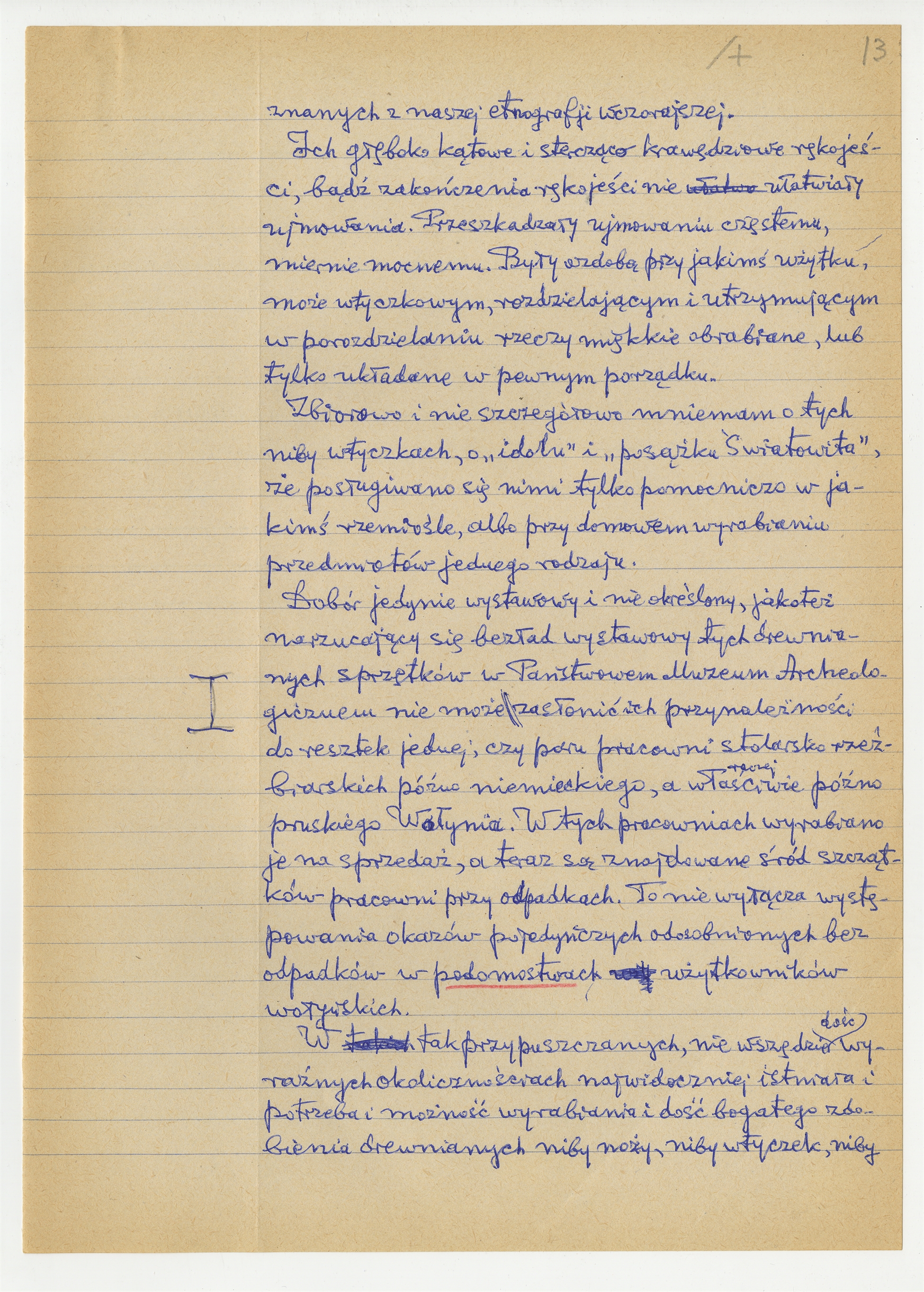 Rękopis pracy pt. "Prusacki Światowitek" (wersja 3) - strona 14: "(…) Ich głęboko kątowe i sterczące krawędziowe rękojeści (…)"