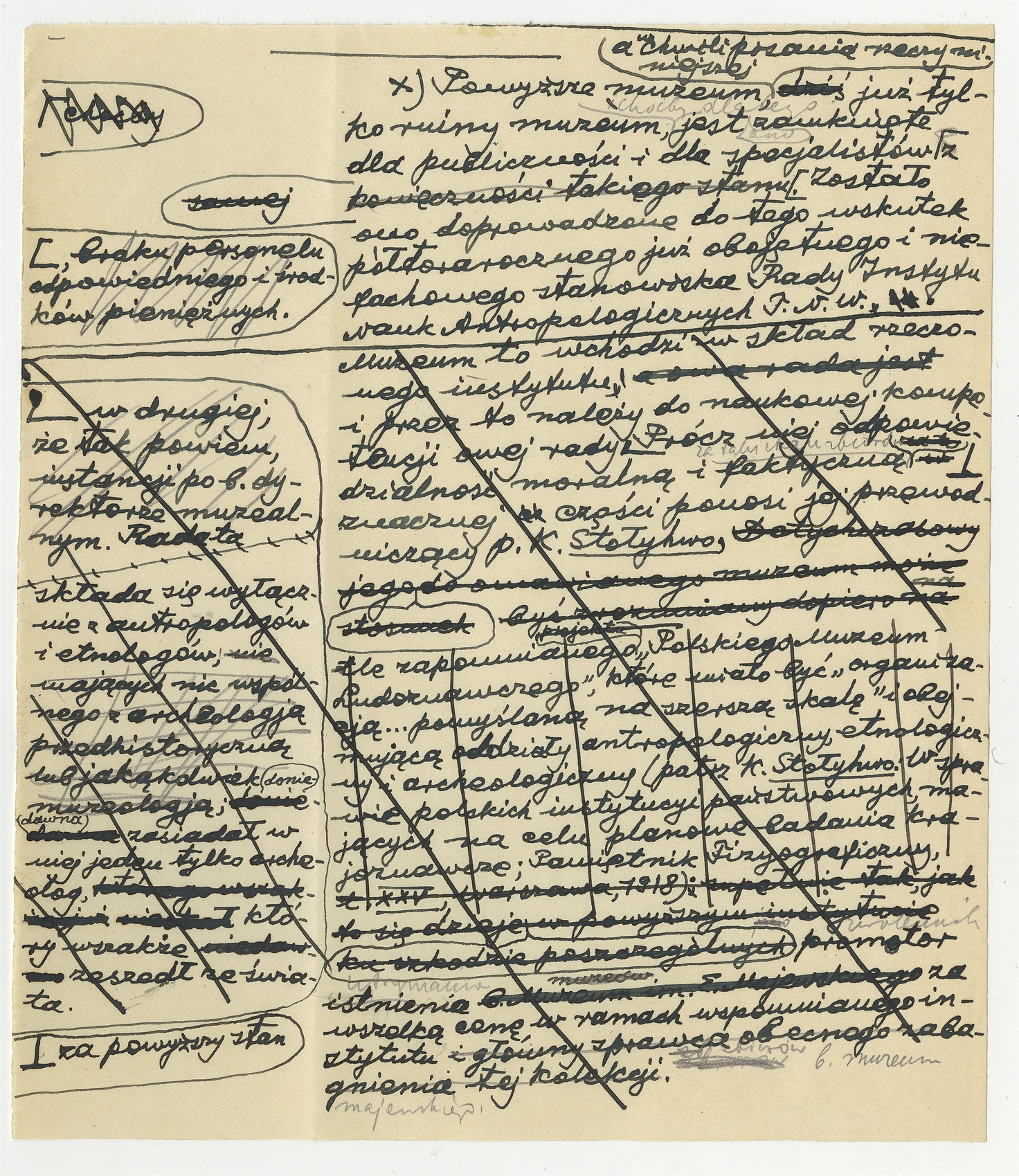 Rękopis pracy pt. "Przemysł protosolutrejski w jaskini Nietoperzowej" - strona 17: "2. Wyroby krzemienne" c.d. (brudnopis z przypisem do tekstu)