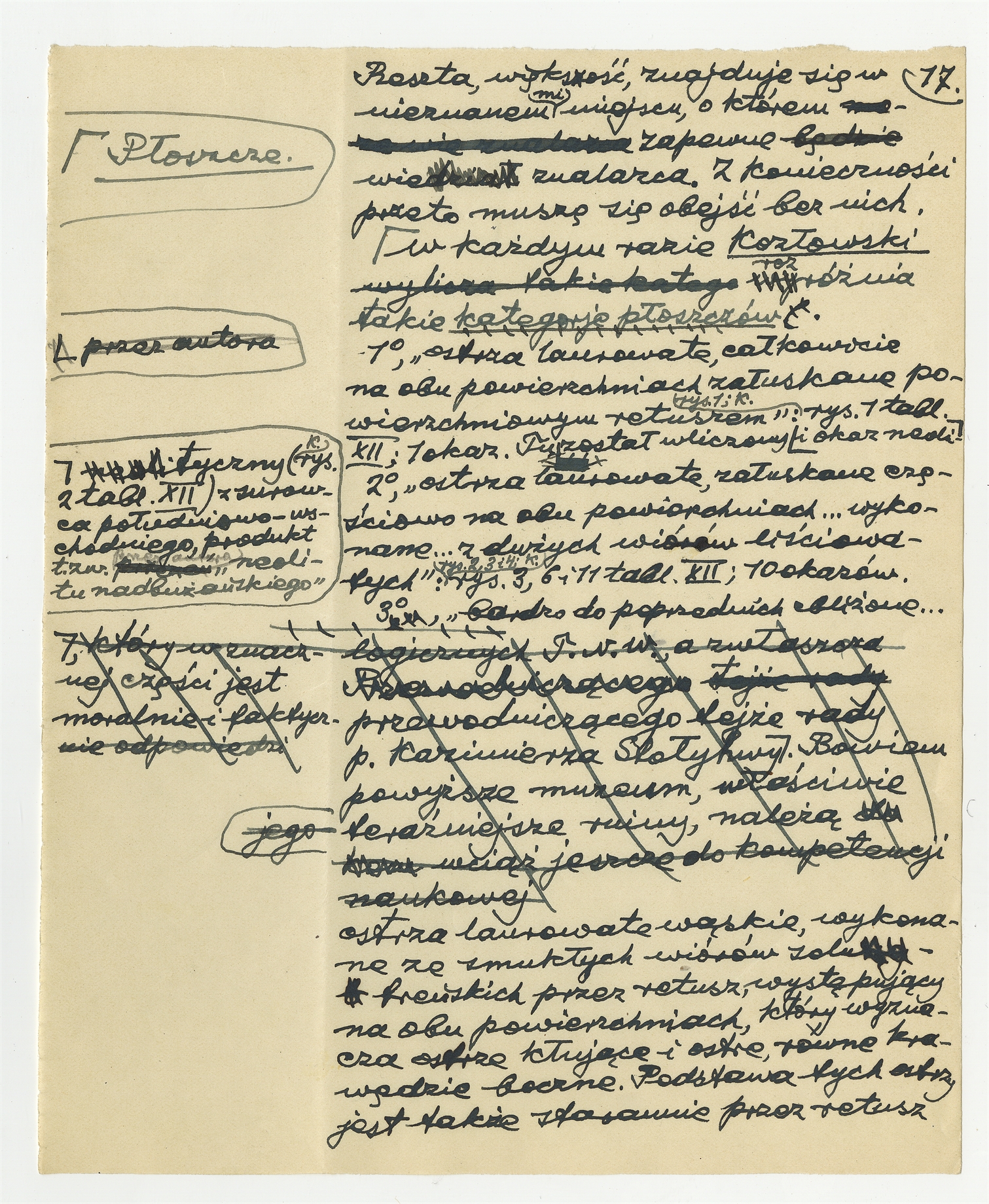Rękopis pracy pt. "Przemysł protosolutrejski w jaskini Nietoperzowej" - strona 19: "2. Wyroby krzemienne" c.d.