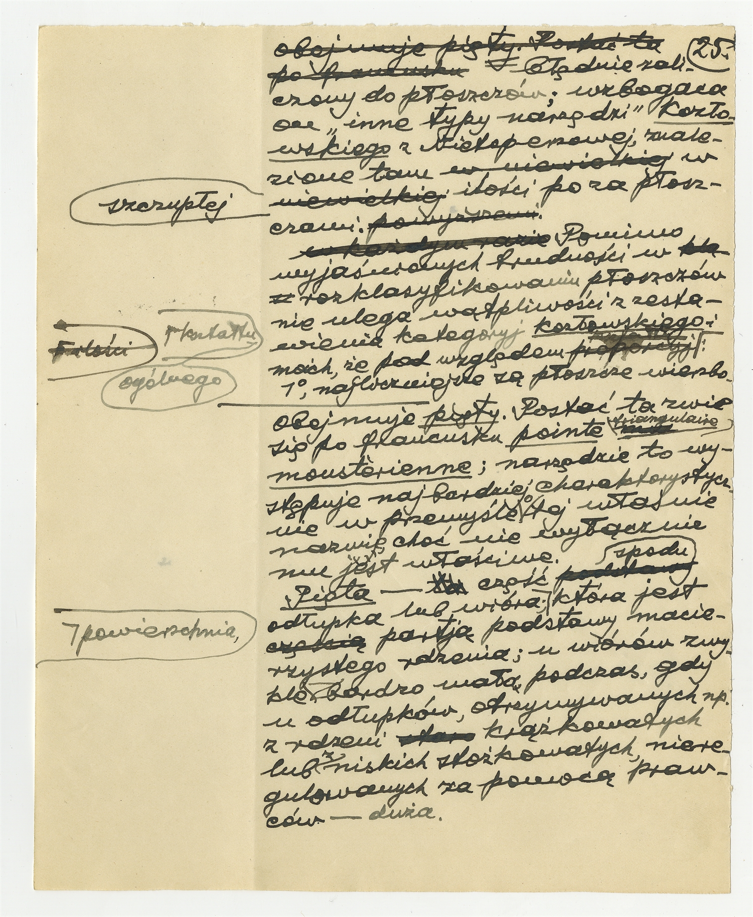 Rękopis pracy pt. "Przemysł protosolutrejski w jaskini Nietoperzowej" - strona 27: "2. Wyroby krzemienne" c.d.
