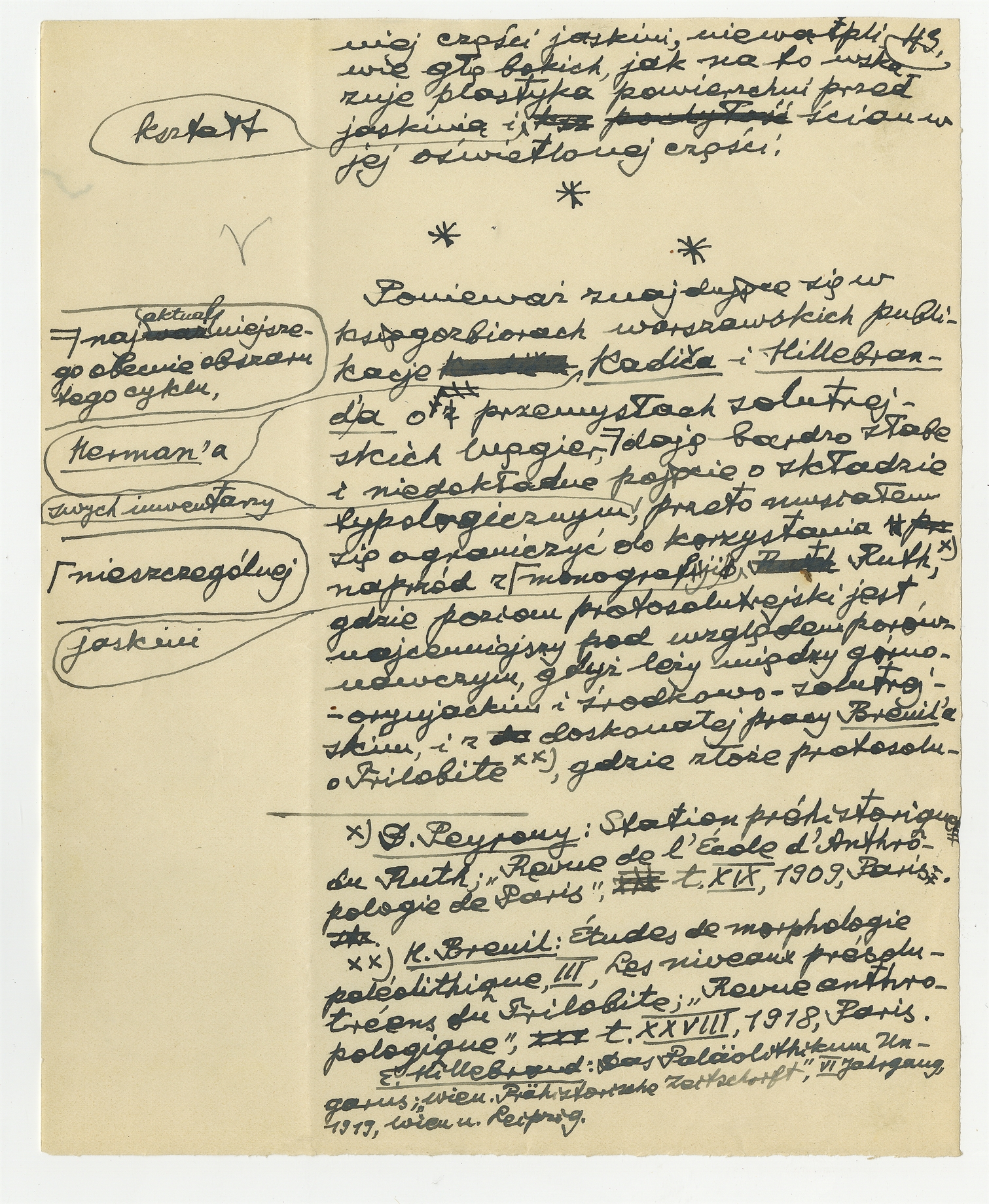 Rękopis pracy pt. "Przemysł protosolutrejski w jaskini Nietoperzowej" - strona 45: "4. Wnioski o dalszych rozkopywaniach namuliska Nietoperzowej" c.d.