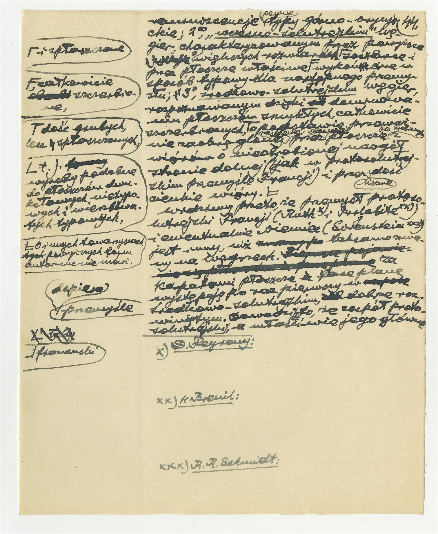 Rękopis pracy pt. "Przemysł protosolutrejski w jaskini Nietoperzowej" - strona 50: "5. Uwagi ogólne o przemyśle protosolutrejskim i inne" c.d.
