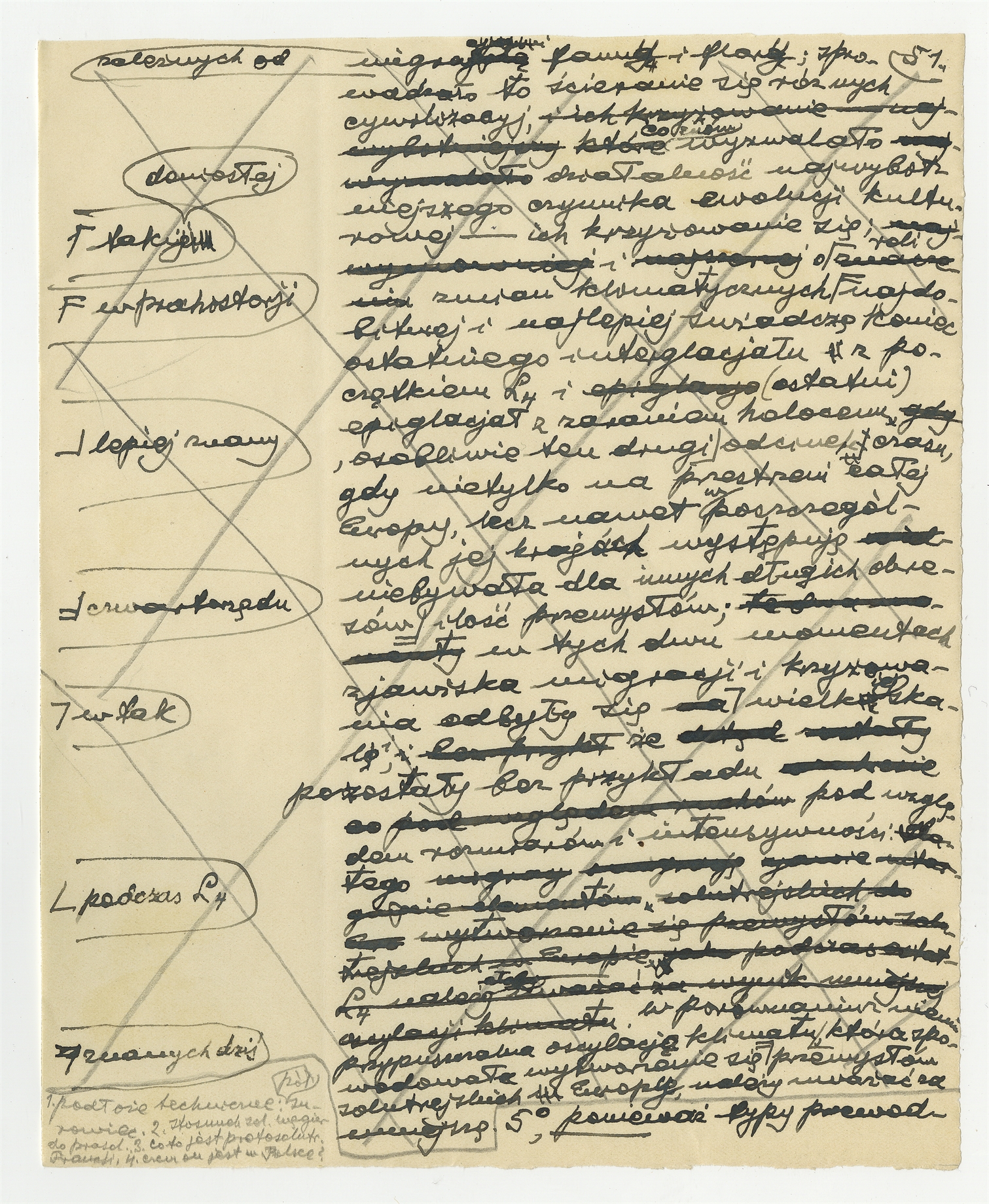 Rękopis pracy pt. "Przemysł protosolutrejski w jaskini Nietoperzowej" - strona 57: "5. Uwagi ogólne o przemyśle protosolutrejskim i inne" c.d.