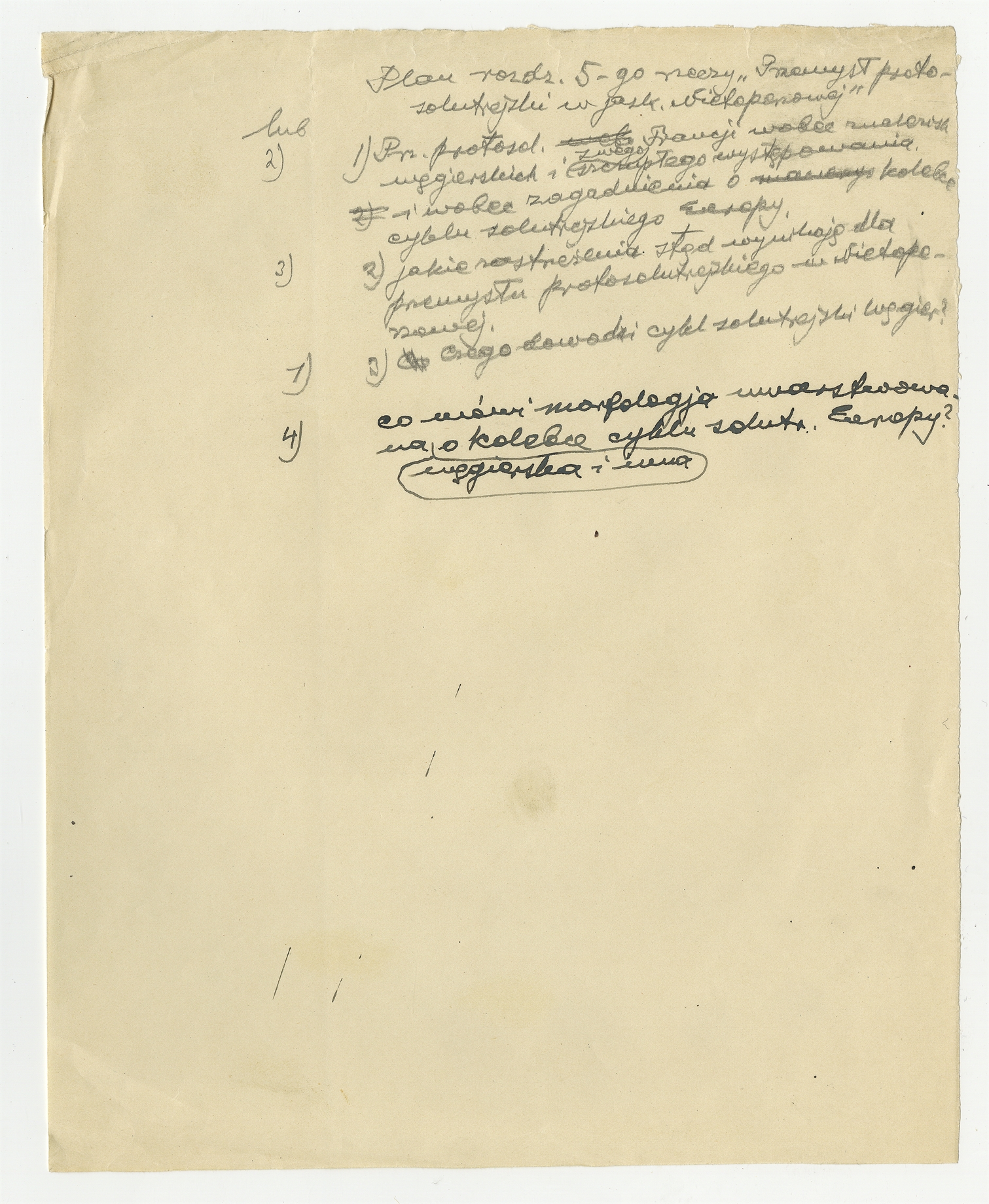 Rękopis pracy pt. "Przemysł protosolutrejski w jaskini Nietoperzowej" - strona 62: "Plan" c.d.