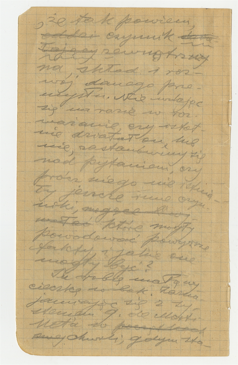 Rękopis pracy pt. "Rylce schyłkowe (?) mikrolitu neolitycznego Polski" - strona 16: "O przyczynach opracowania pewnych typów narzędzi krz." c.d.