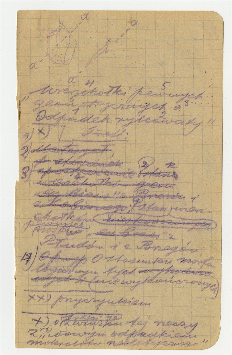 Rękopis pracy pt. "Rylce schyłkowe (?) mikrolitu neolitycznego Polski" - strona 19: "Odpadek rylcowaty a wierzchołki pewnych geometrycznych. Treść."