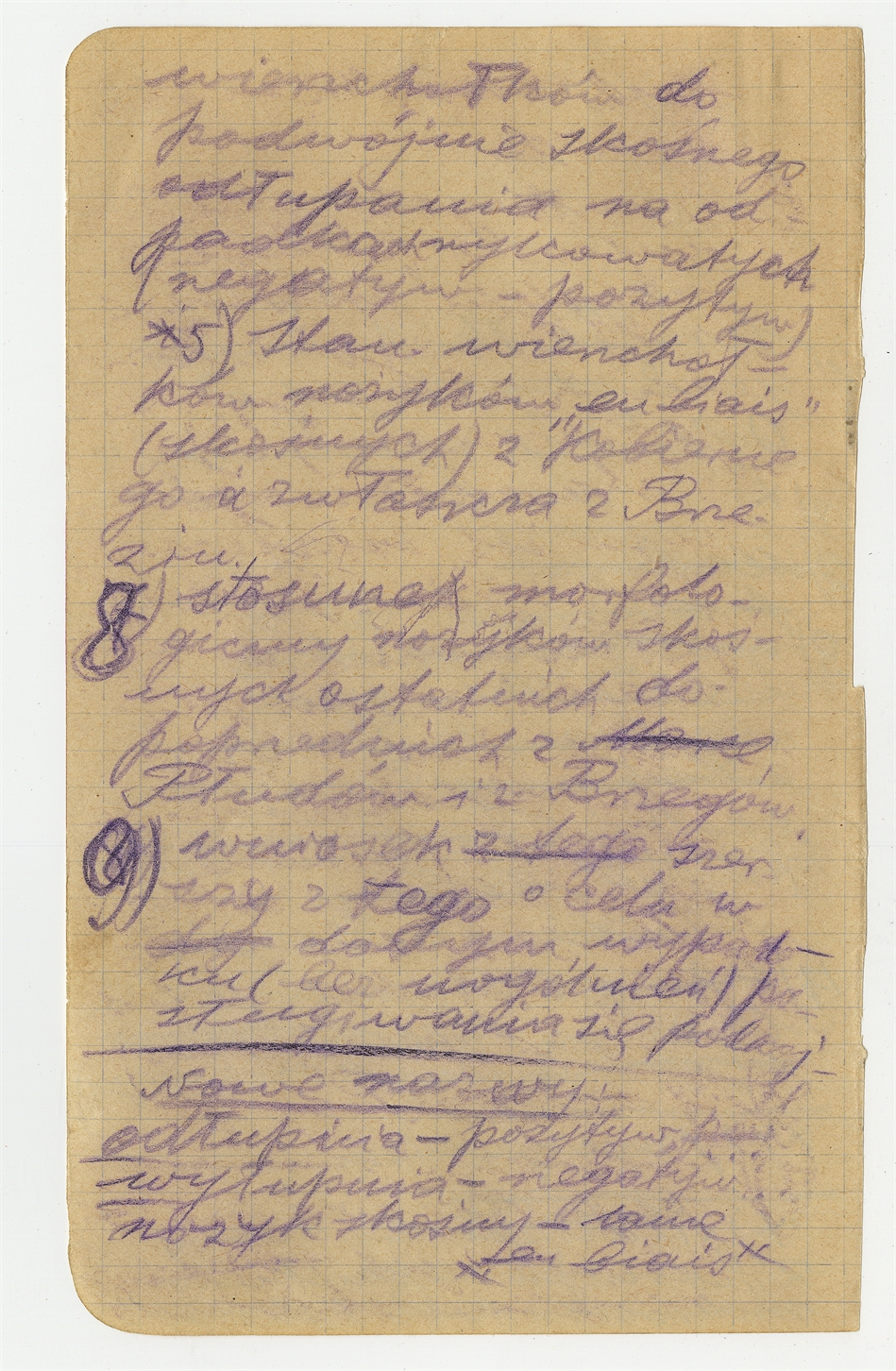 Rękopis pracy pt. "Rylce schyłkowe (?) mikrolitu neolitycznego Polski" - strona 20: "Odpadek rylcowaty a wierzchołki pewnych geometrycznych Treść." c.d.