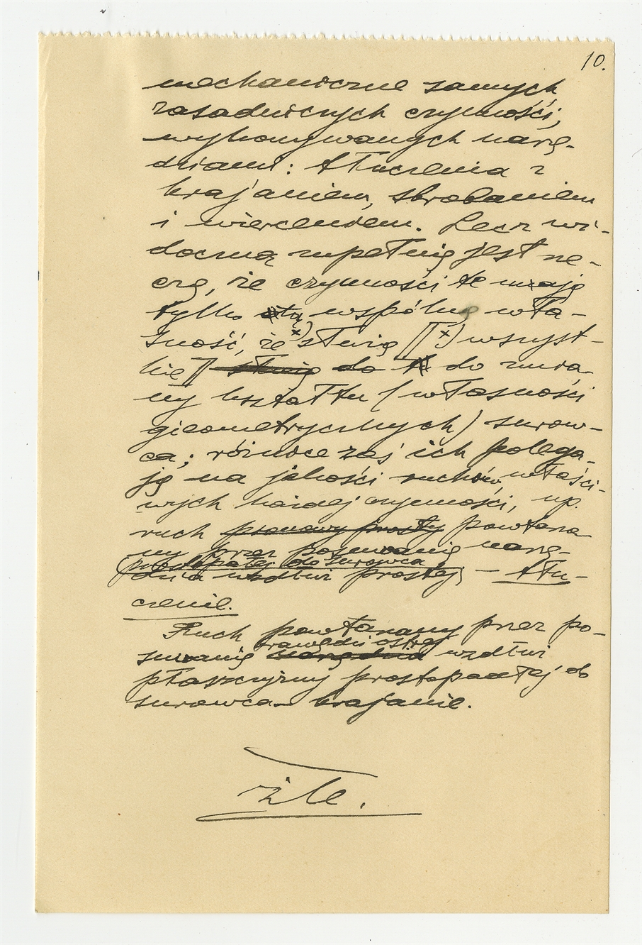 Rękopis pracy pt. "Skrobacz i nóż. Monografja z dziedziny paleotechnologji" - strona 10: "(…) mechaniczne samych zasadniczych czynności (…) "