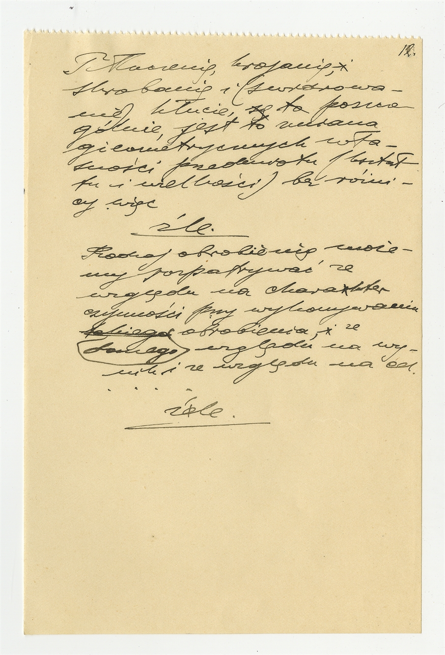 Rękopis pracy pt. "Skrobacz i nóż. Monografja z dziedziny paleotechnologji" - strona 12: "Tłuczenie krajanie skrobanie (…) "