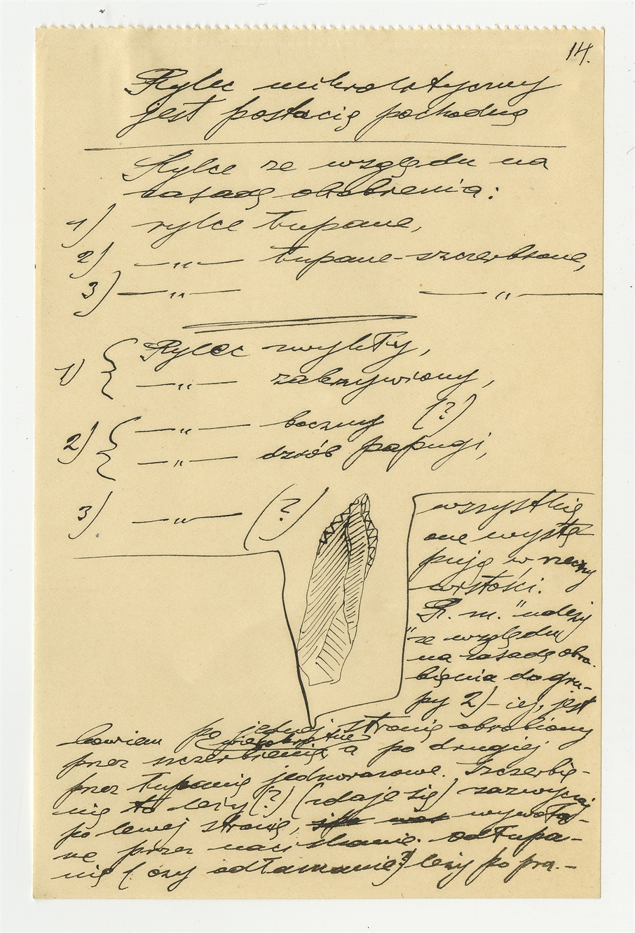 Rękopis pracy pt. "Skrobacz i nóż. Monografja z dziedziny paleotechnologji" - strona 14: typologia rylców