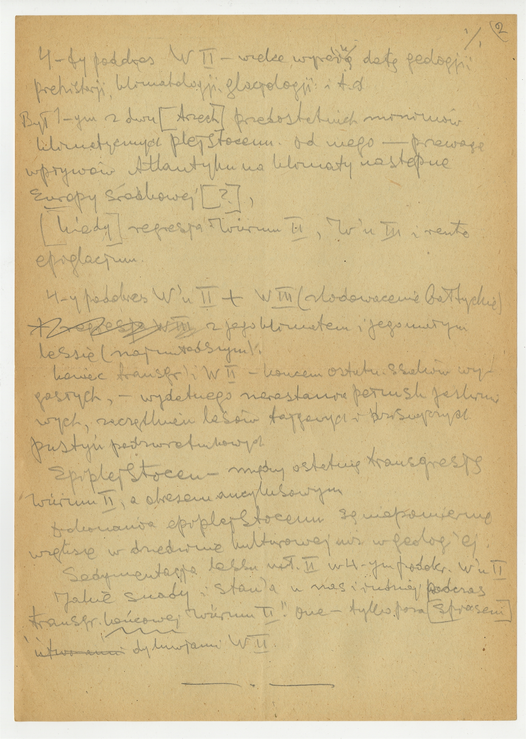 Rękopis pracy pt. "Spias [brzegowy] nawierzchni Würmu III" - strona 4: "4-y podokres WII" wypisy skrócone z S.K. Paleolit Polski Kraków 1939" c.d.