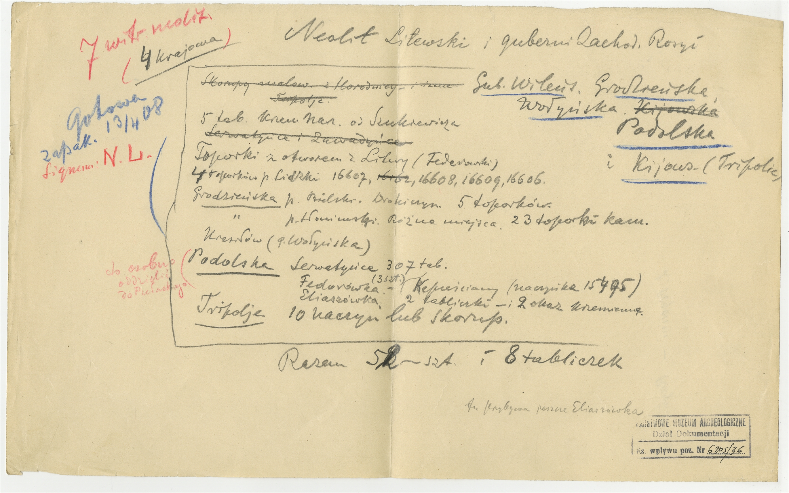 Rękopis - projekt wystawy MEM: "Neolit Litewski i guberni Zachod. Rosji"