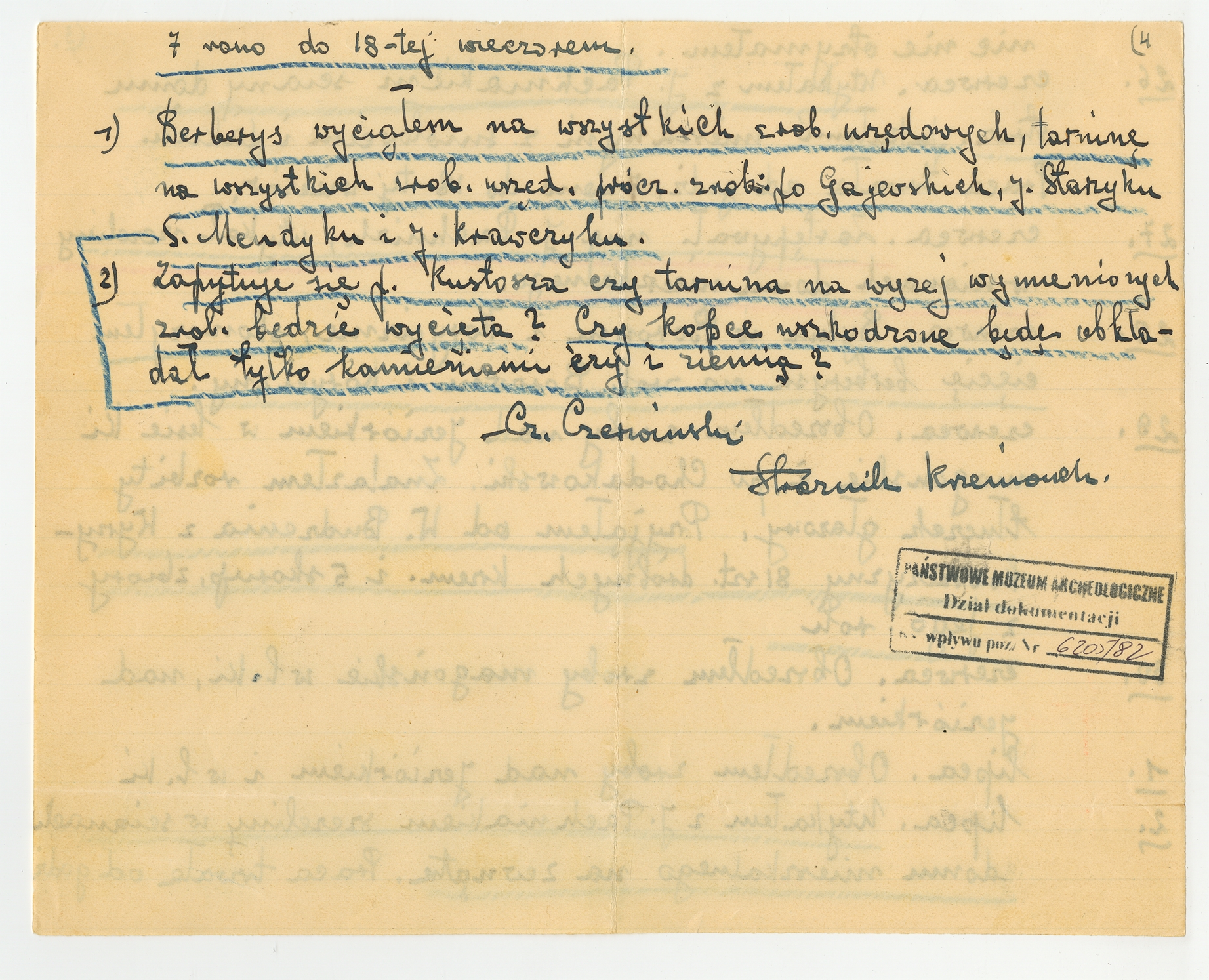 Rękopis - raport strażnika Krzemionek C. Czerwińskiego z dnia 28 sierpnia 1935 roku z okresu 13 - 27 VIII 1935 roku - strona 4