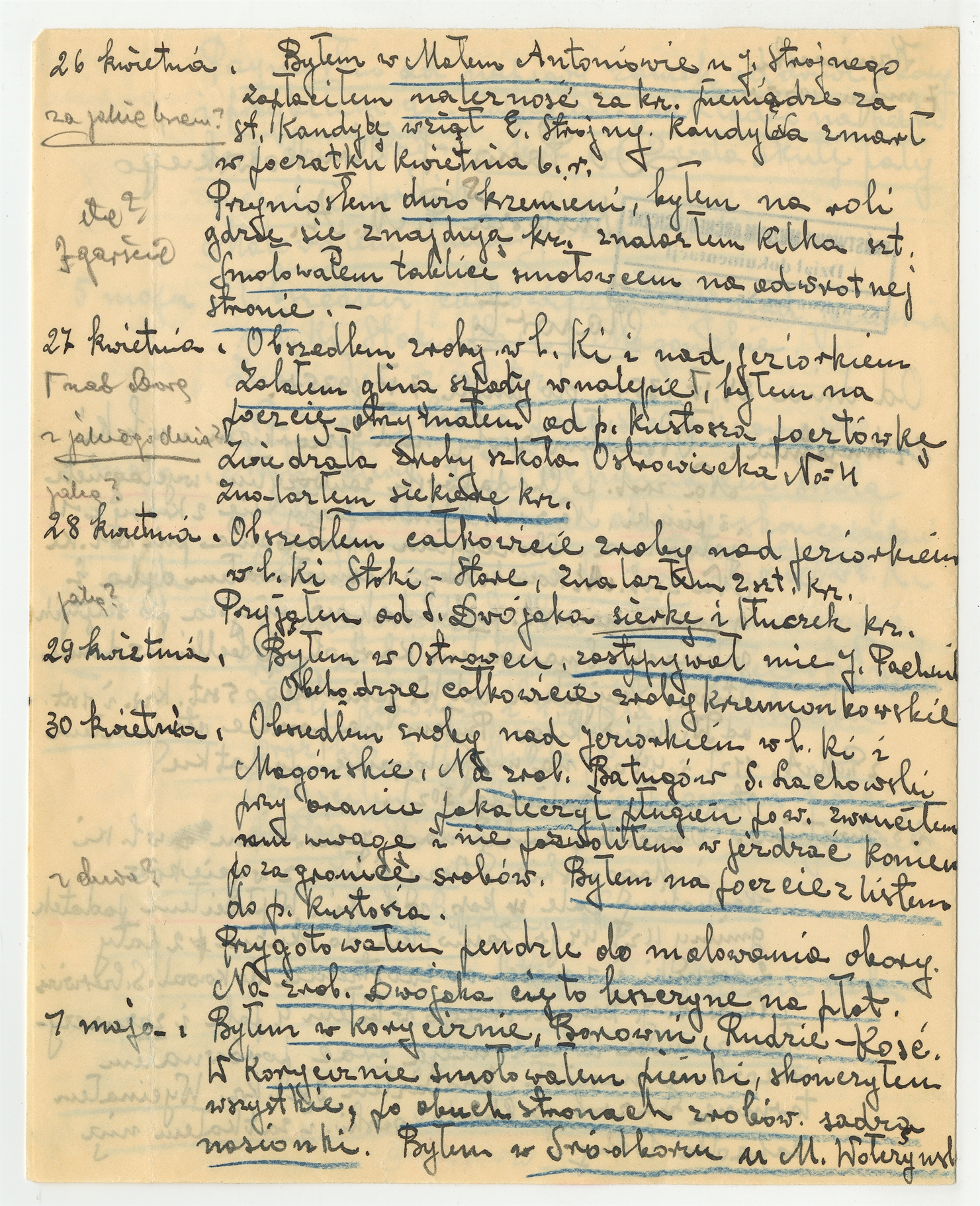 Rękopis - raport strażnika Krzemionek C. Czerwińskiego z dnia 7 maja 1935 roku z okresu 24 IV- 7 V 1935 roku (cd)