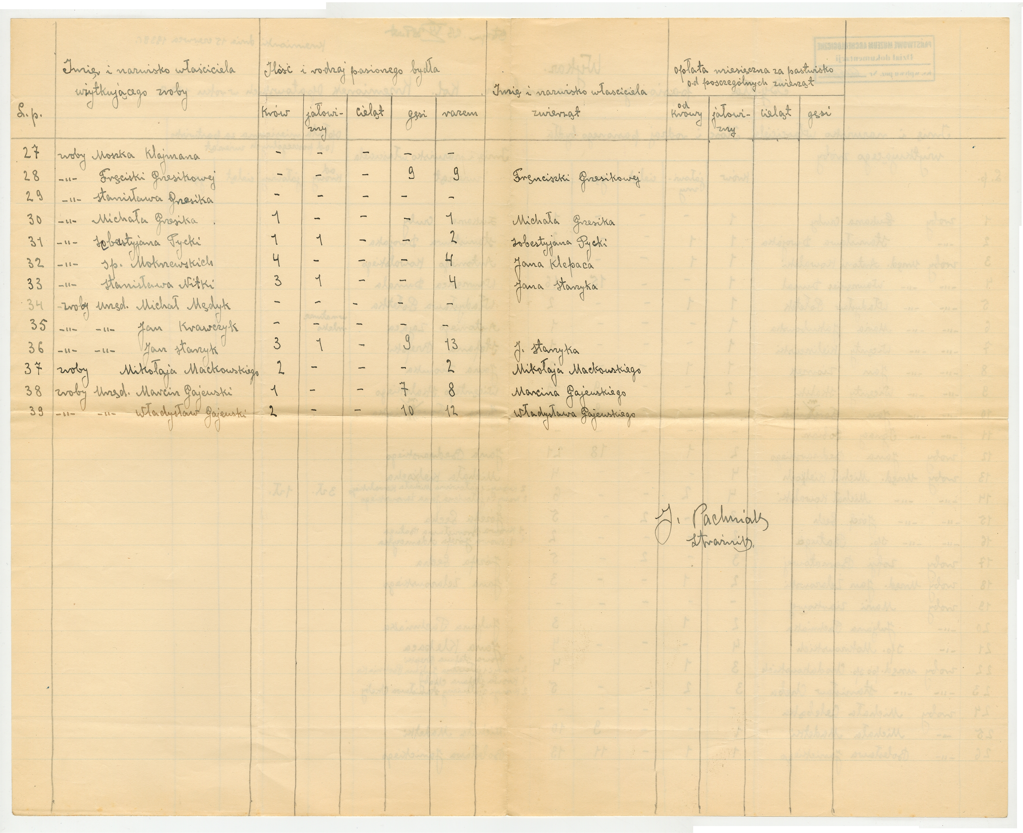 Rękopis - raport strażnika Krzemionek J.Pachniaka z dnia 15 czerwca 1938 roku - "Spis bydła pasionego na zrobach kol. Krzemionek Opatowskich w roku 1938" (cd)